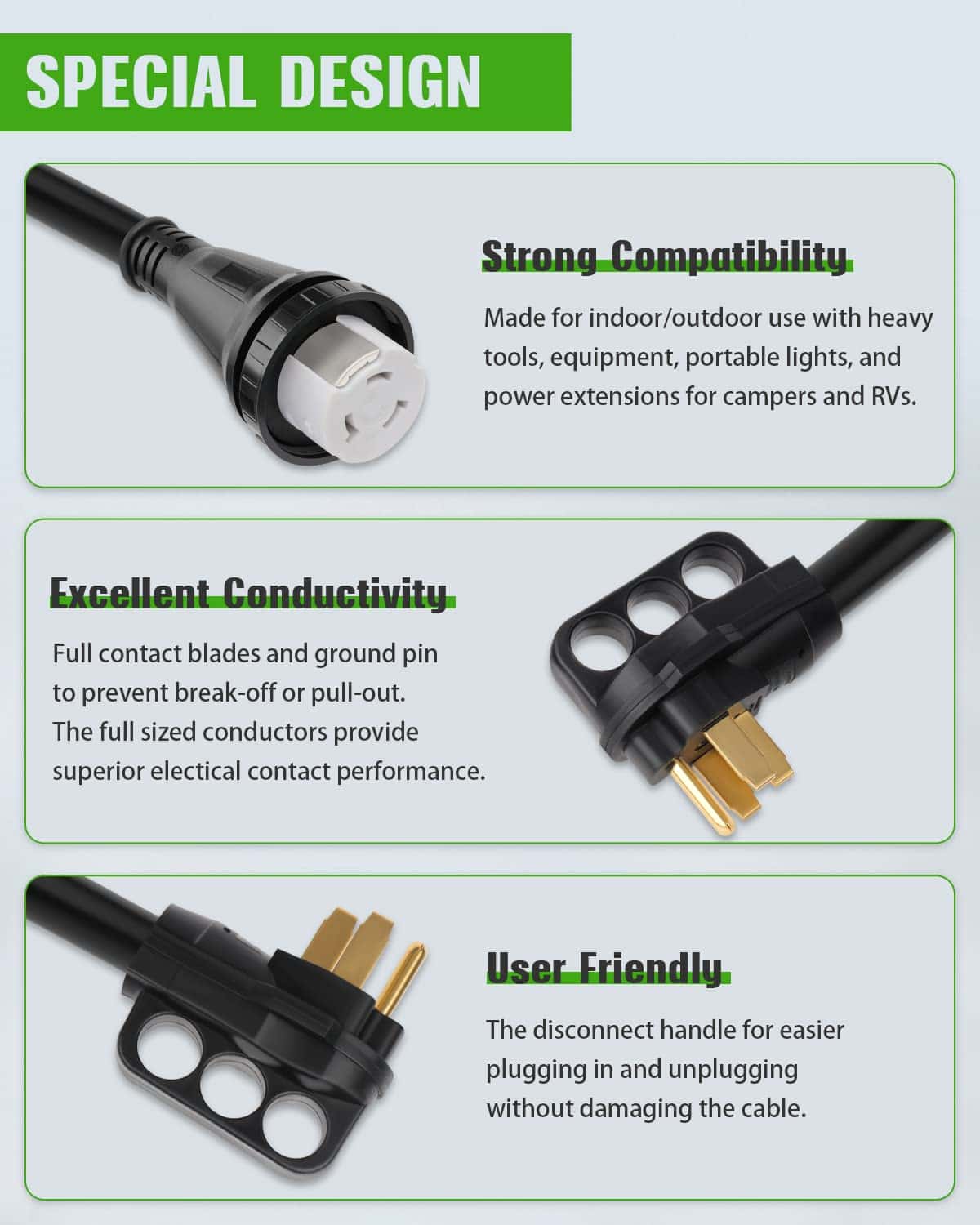 Cable de Extensión Universal para RV de 25 Pies 50Amp,
