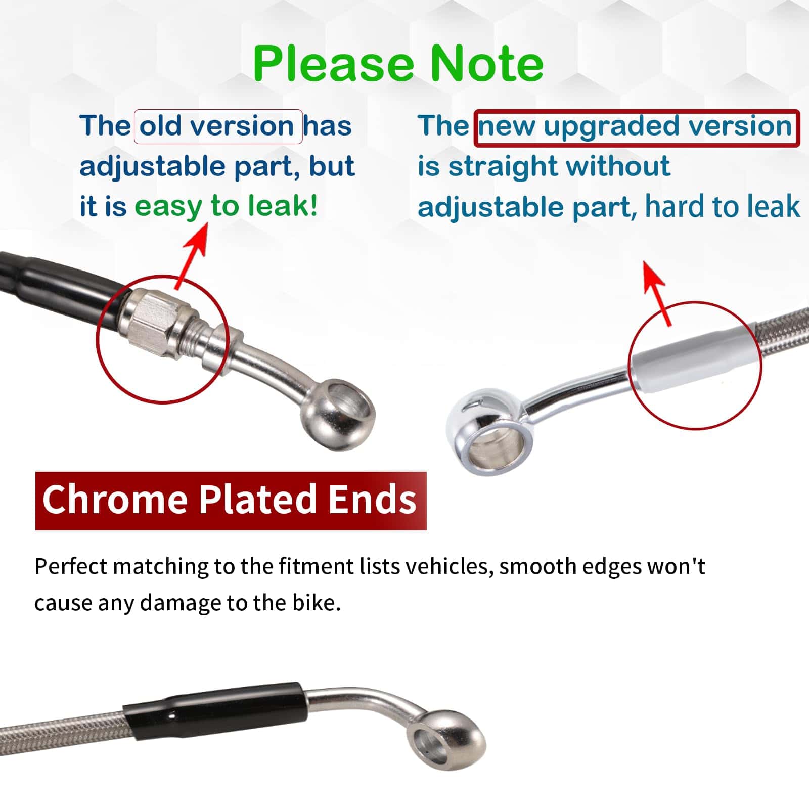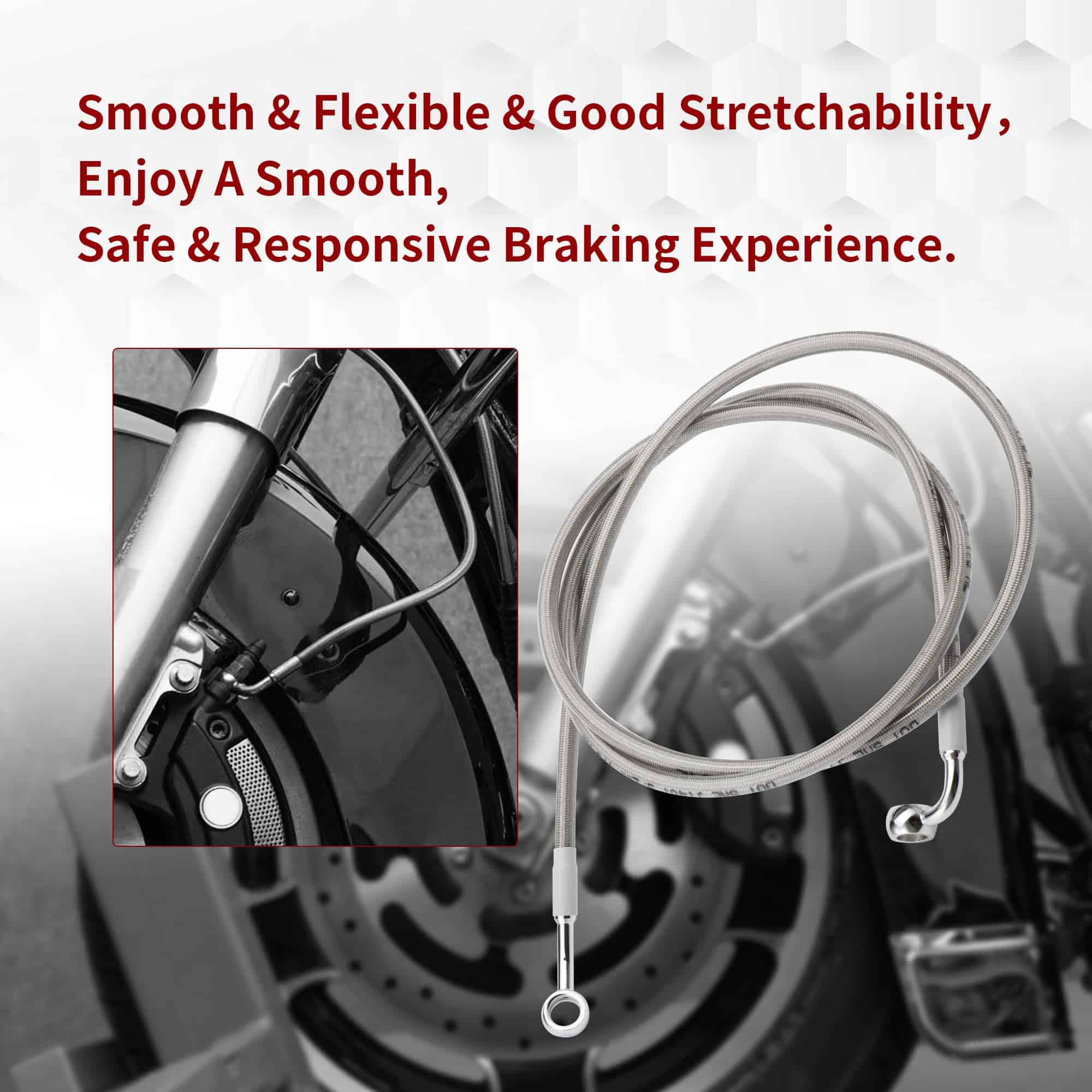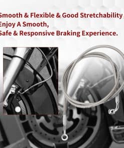Actualiza tu motocicleta ahora con nuestro cable de freno delantero extendido para un rendimiento, estilo y seguridad mejorados, con una longitud extendida para manillares o elevadores más altos, construcción de acero inoxidable trenzado de alta calidad, con su longitud extendida, operación suave y fácil instalación, nuestro cable de freno ofrece una actualización completa que marcará una diferencia notable en la funcionalidad de tu motocicleta y en tu disfrute de la conducción.