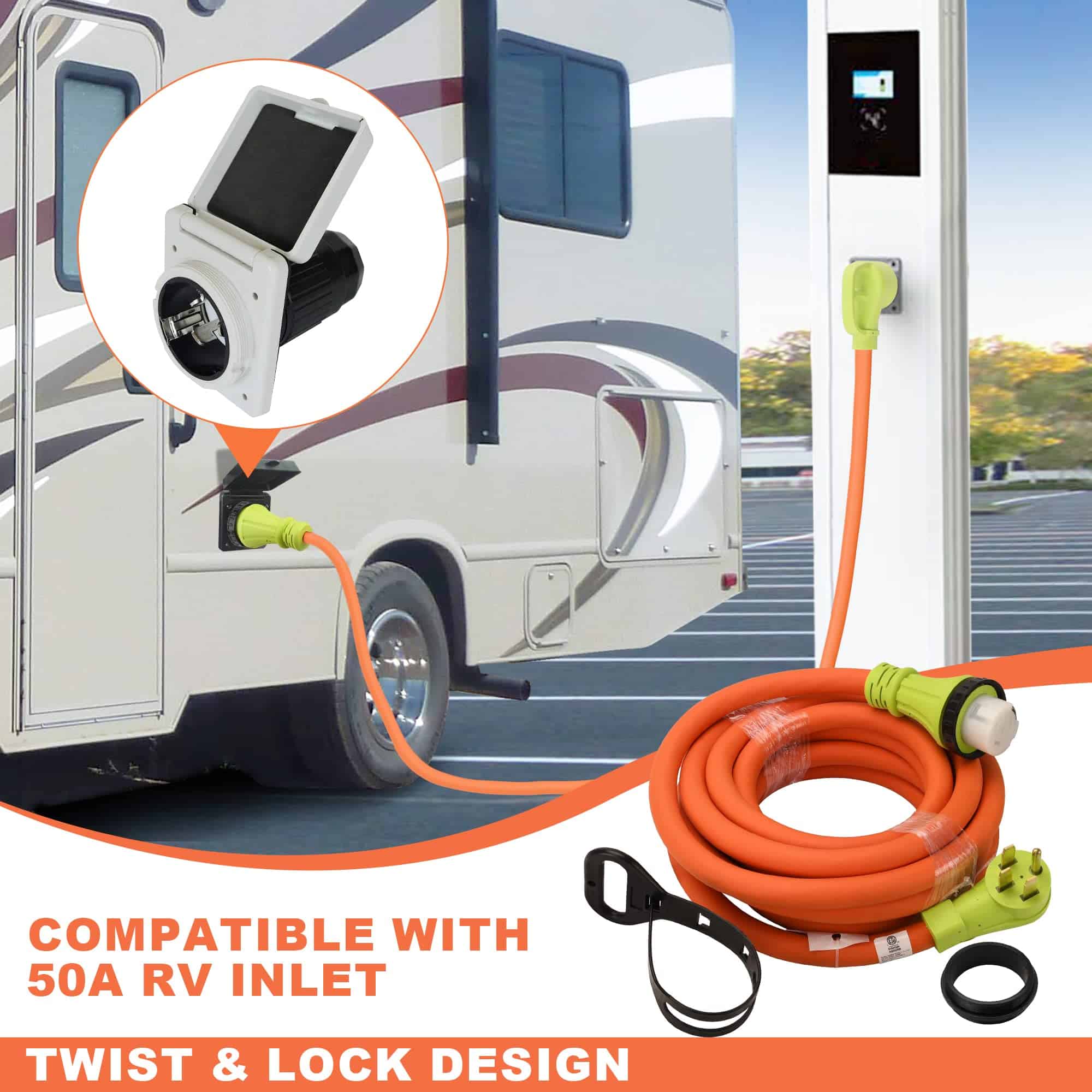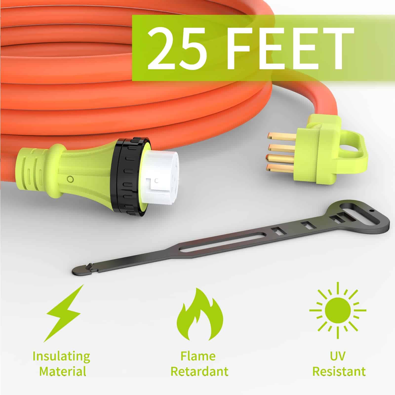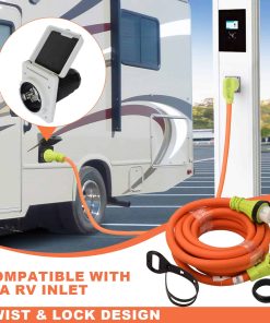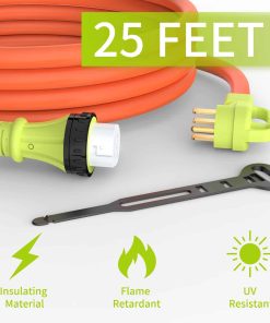 5. Fácil de Usar El enchufe con espacio para agarrar puede conectar y desconectar el conector de manera segura y eficiente. Viene con un organizador de cable ajustable para un fácil almacenamiento en su RV o garaje.