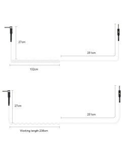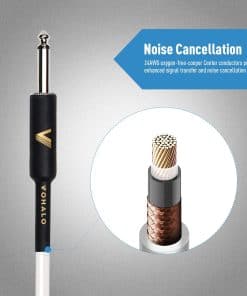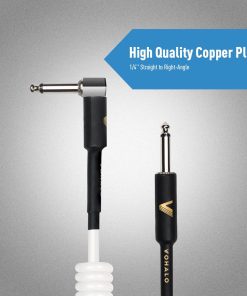Cable de Guitarra Bobinado VOHALO 36 Pies/11M Cable de Instrumento Bobinado para Guitarra Bajo. Conductor central trenzado de calibre 20 AWG, un escudo en espiral de cobre desnudo que proporciona una cobertura del 95%. La cubierta de PVC semiconductora reduce el ruido triboeléctrico y proporciona un rendimiento limpio y de bajo ruido, sin microfonías. Baja capacitancia (30 pF/PIE) que proporciona un tono cálido y rico, no brillante, áspero o quebradizo – resultado de una capacitancia demasiado baja – y no demasiado opaco o lodoso – resultado de una capacitancia demasiado alta. El cobre libre de oxígeno utilizado en nuestros cables ofrece la máxima calidad de sonido mientras se mantiene flexible y sin ruido. Chaqueta exterior de PVC resistente diseñada para resistir las rigurosidades de un uso intenso manteniendo la flexibilidad. Es un cable Bobinado/Recto 50/50 para aquellos que no pueden decidir si prefieren un cable rizado o recto, el tamaño Bobinado/Recto 50/50 permite un movimiento fácil y libre al tocar, sin enredos ni tropiezos.