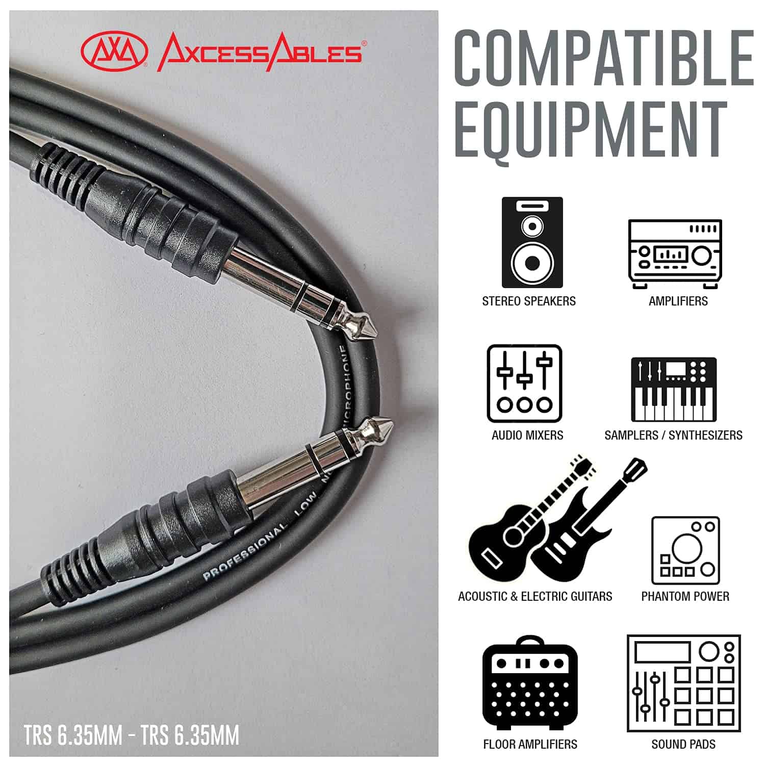 Cable de Instrumento AxcessAbles TRS14-STRS110 de 1/4 de