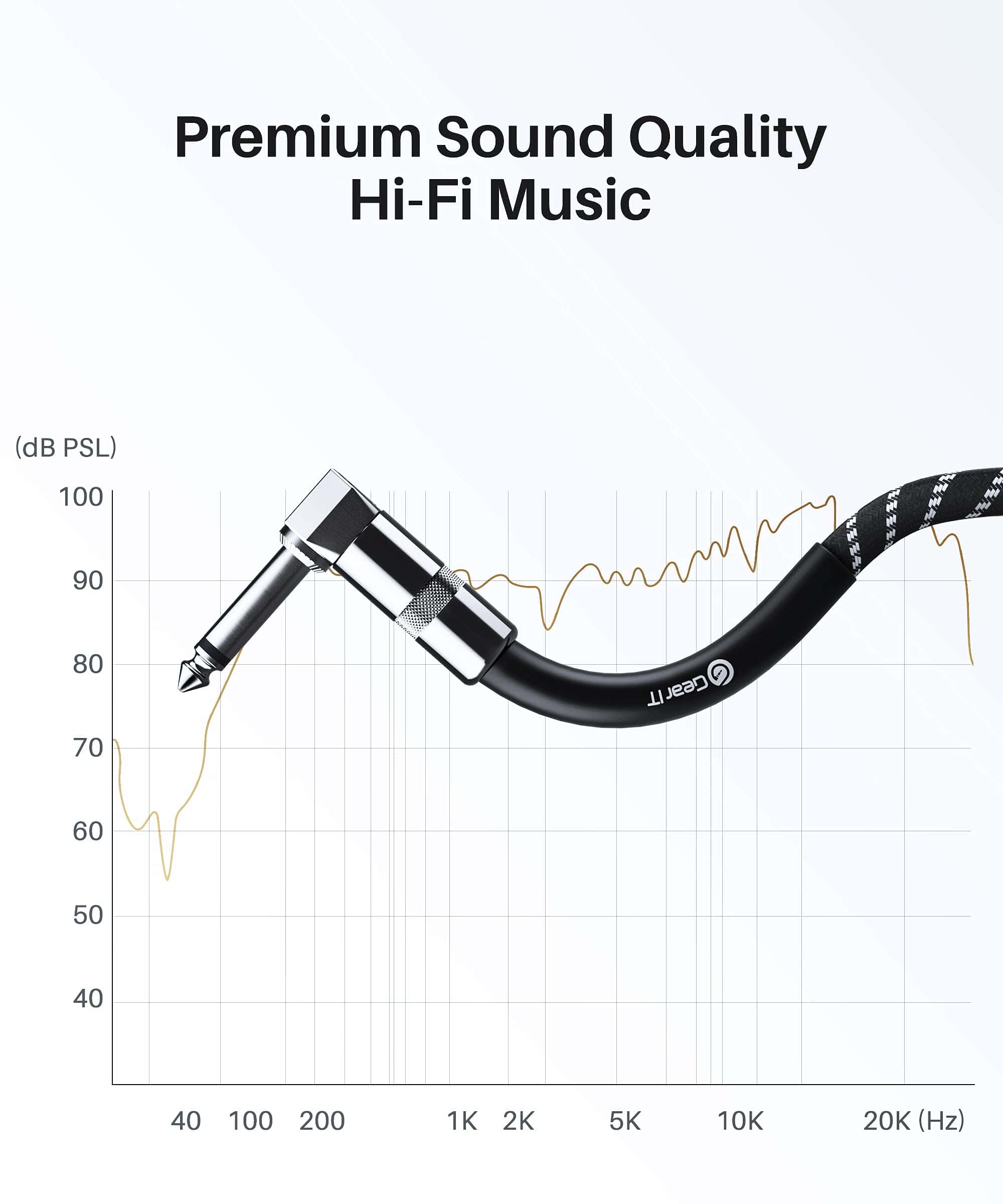 1. Conectores rectos y en ángulo recto de 1/4 (6.5mm) son la solución ideal para una conexión segura para cualquier instrumento, pedal o jack de amplificador.