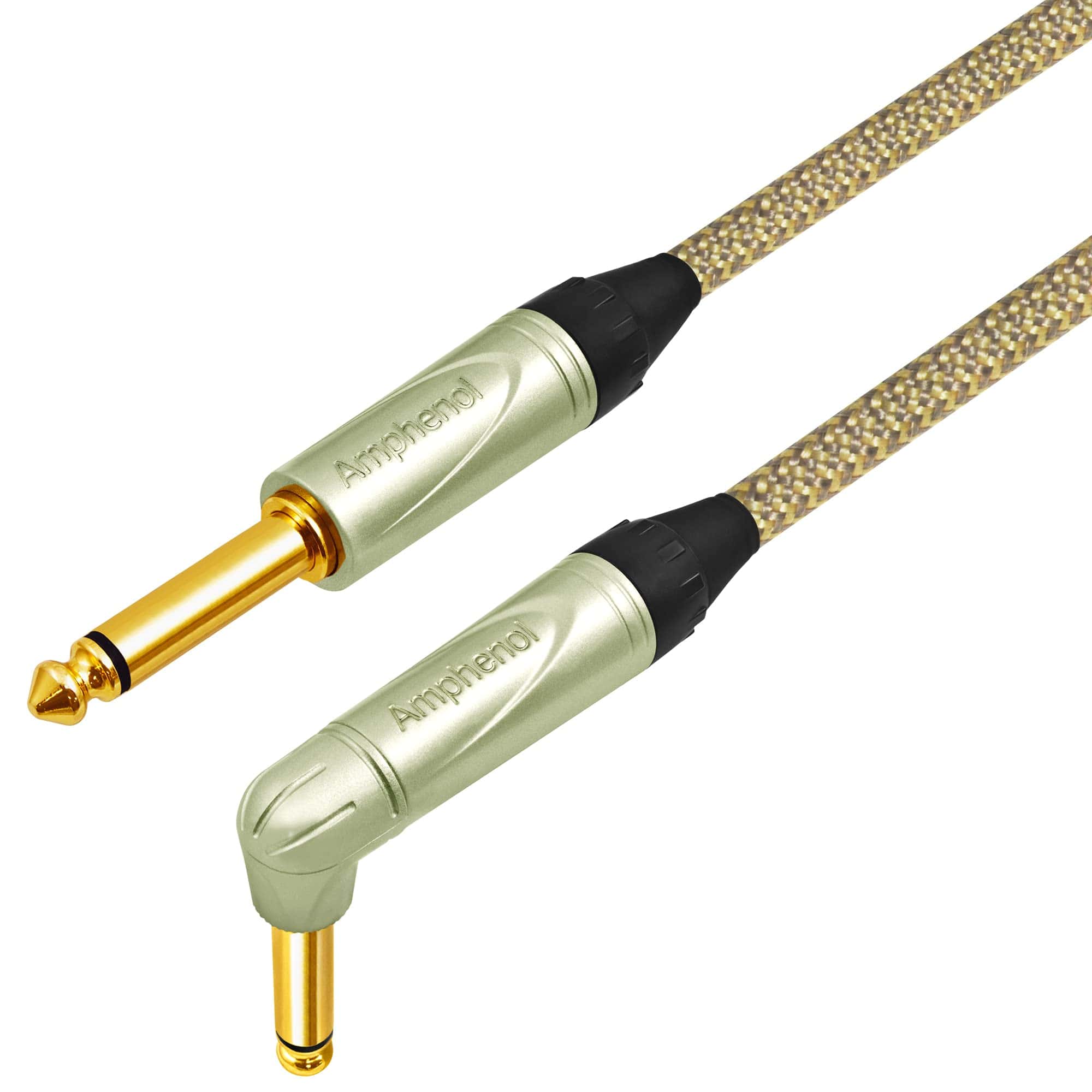 20 Pies – Audioblast HQ-1-BRAID (Tan + Beige) – Cable Profesional Duradero y Flexible – Blindado Dual (100%) para Guitarra Bajo Instrumento con Enchufes Amphenol QM2R-AU Mono Dorado y Amphenol QM2P-AU Mono Dorado