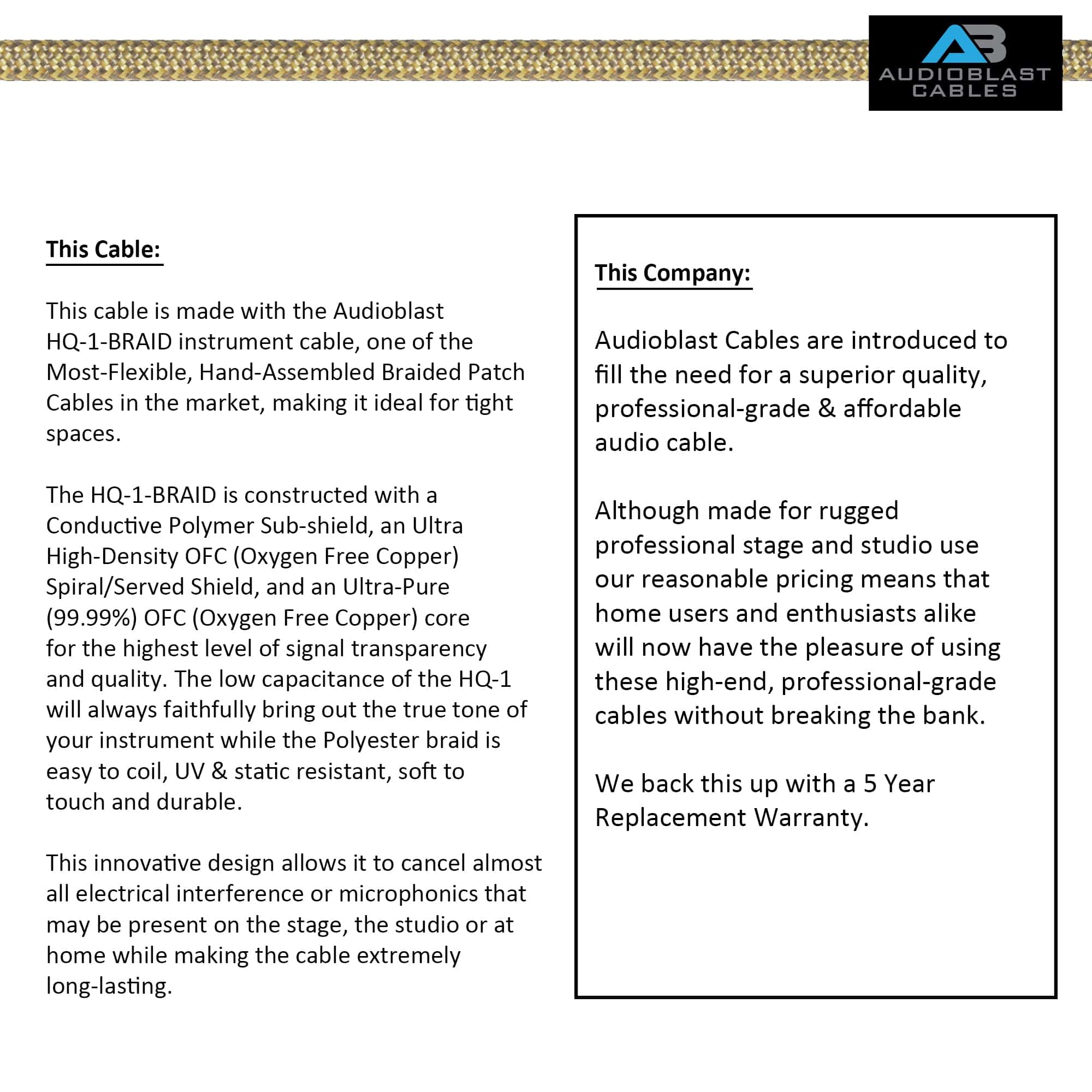 20 Pies – Audioblast HQ-1-BRAID (Tan + Beige) Duradero y Flexible – Blindado Dual (100%) – Cable para Guitarra Bajo Instrumento, Profesional con Enchufe Mono Dorado en Ángulo Recto Amphenol QM2R-AU y Enchufe Mono Dorado Amphenol QM2P-AU. +++ ¡El Cable Trenzado Más Flexible, Montado a Mano en el Mercado con una Trenza de Poliéster Ultra Suave, Fácil de Enrollar, Extremadamente Duradera! A diferencia de las Trenzas de Nylon que proliferan en el mercado, las Trenzas de Poliéster son más Ecológicas (es decir: Reciclables), Los Colores no se desvanecen rápidamente y son Resistentes al Estatico. +++ EL HQ-1 ES UN CABLE FLEXIBLE Y SE PUEDE TORCER Y ENROLLAR FÁCILMENTE ENTRE SU EQUIPO.