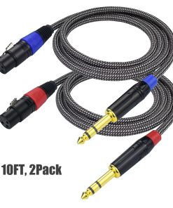 El cable TRS a XLR hembra está completamente cubierto con cobre libre de oxígeno, y debajo del blindaje de cobre libre de oxígeno hay papel de aluminio. Con estas dos capas, el cable puede evitar eficientemente la interferencia de radiofrecuencia (RFI) y electromagnética (EMI). No tienes que preocuparte por zumbidos o interferencias. De todas formas, no recomendamos colocar este cable sobre adaptadores, enchufes y otros dispositivos que emitan RFI y EMI. El paquete incluye dos cables de 6.35 mm a XLR hembra, cada uno con una longitud de 10 pies. Uno de los cables tiene anillos rojos y el otro tiene anillos azules, con anillos de diferentes colores, no insertarás el conector en la toma equivocada por error. Este cable de un cuarto de pulgada a XLR hembra se usa comúnmente para transmitir la señal de salida XLR a mezcladores, interfaces de audio, altavoces, monitores de estudio, preamplificadores y otros que tengan una entrada de 1/4 de pulgada balanceada. Ofrecemos garantía de 12 meses para cada cable. Si el cable presenta algún problema dentro de la garantía, no tienes que esperar mucho para hacer la devolución y reparación. ¡Nosotros enviaremos un nuevo cable para reemplazo una vez que se haya confirmado el problema!