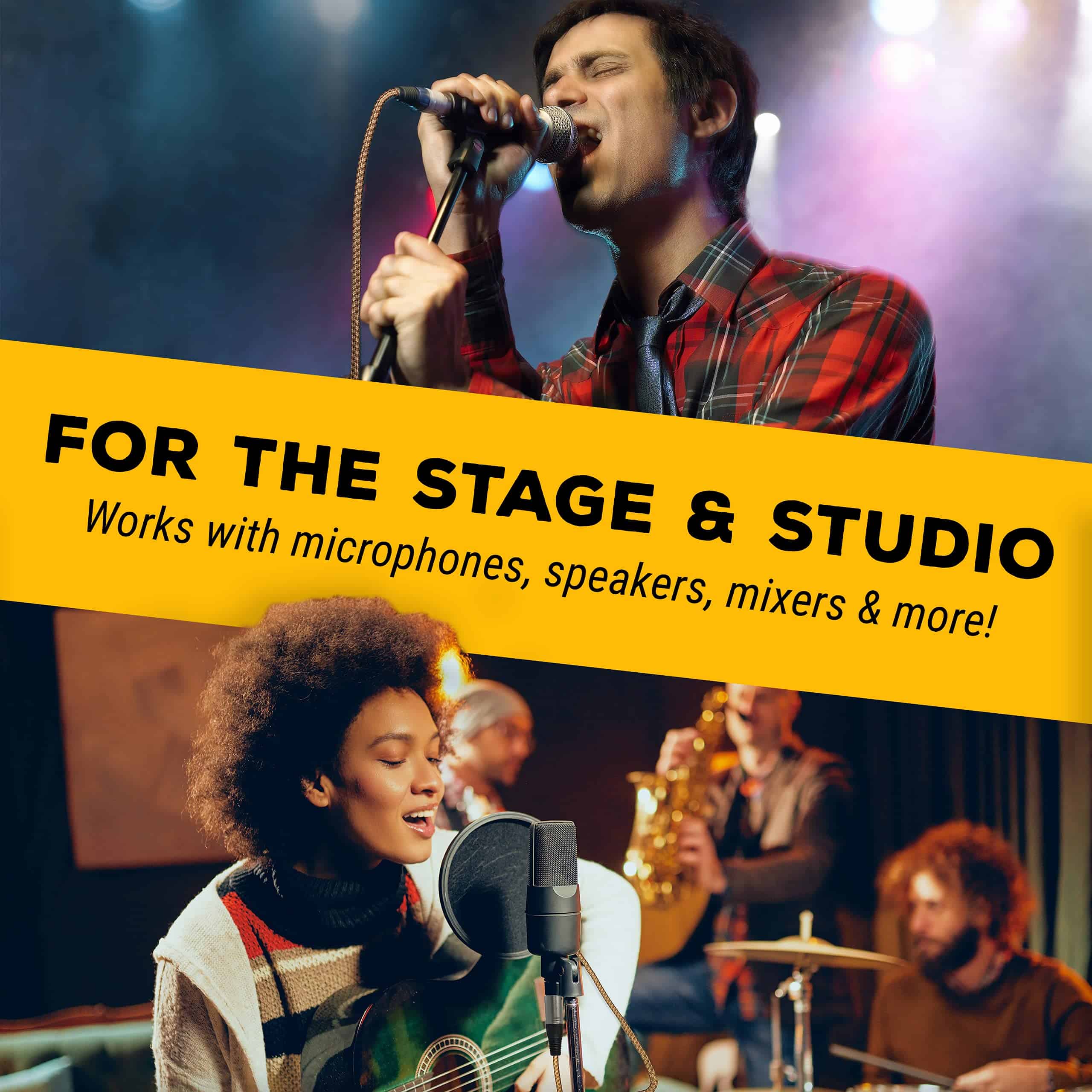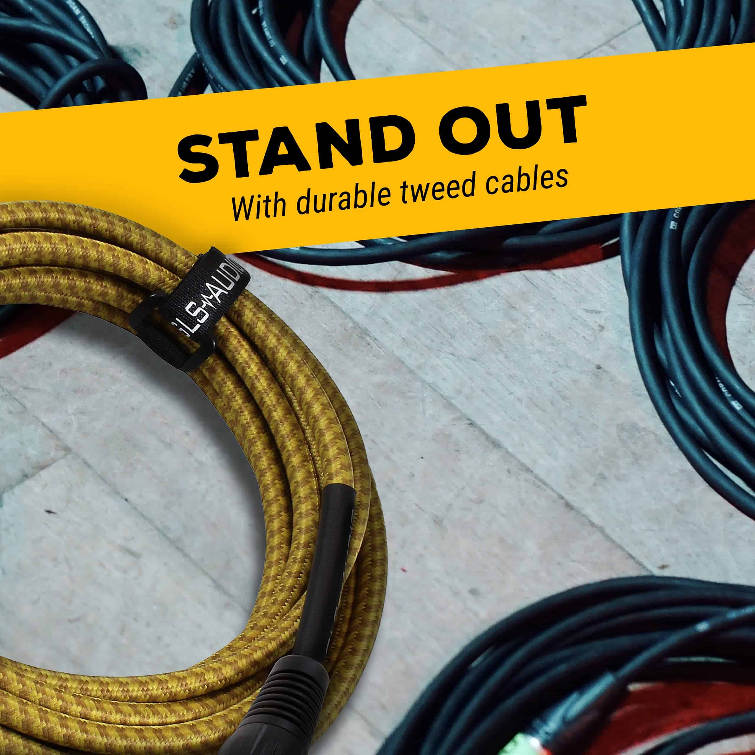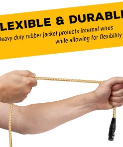 Cable de micrófono GLS Audio de 25 pies, con chaqueta trenzada de tweed marrón y amarillo. Este cable cuenta con un diseño resistente y flexible que ofrece un alto rendimiento. Presenta un alivio de tensión Tri-Grip y protector de goma para una mayor durabilidad. La tecnología de cableado balanceado verdadero con impedancia equilibrada Lo-Z garantiza un excelente rendimiento sin ruido. Ideal para músicos y profesionales del sonido en estudio y en vivo.