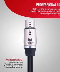 Cable de micrófono Monster Cable Prolink Performer 600. Experimenta una reproducción de sonido de alta calidad en cualquier entorno con el Cable de Micrófono Monster Cable Prolink Performer 600. Este cable XLR de 50 pies ha sido diseñado para satisfacer las exigencias de grabaciones de estudio y actuaciones en vivo. Cuenta con un blindaje de alta densidad y carbono polímero que minimizan el ruido de interrupción de la señal, asegurando una transmisión de audio limpia y clara en todo momento. La chaqueta Duraflex ligera y flexible proporciona máxima protección al cable sin sacrificar la facilidad de manejo y flexibilidad. El conector XLR Monster garantiza una conectividad sin problemas con una amplia gama de equipos de audio. Además, está respaldado por la garantía de reemplazo al 100% de Monster, brindando tranquilidad y asegurando un rendimiento a largo plazo con cada compra. Este Cable de Micrófono Performer 600 ha sido confiado por profesionales en la industria musical debido a su limpieza y excelente reproducción de sonido. Cuenta con tecnologías avanzadas que garantizan su durabilidad y confiabilidad a largo plazo, probado para resistir las demandas del uso profesional en estudio y en el escenario.