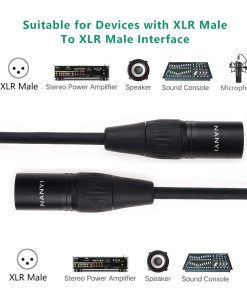 Cable de micrófono XLR Macho a XLR Macho NANYI diseñado para ofrecer el mejor rendimiento para equipos con conectores XLR de 3 pines. Cuenta con botas de goma y alivio de tensión con triple agarre para proteger y sellar los cables, garantizando la máxima durabilidad y protección contra cortocircuitos. Con doble blindaje y conductores de cobre para un funcionamiento óptimo. La chaqueta resistente de alta calidad asegura un rendimiento máximo y durabilidad extrema. Disfruta de un sonido de calidad superior y sin ruido gracias a su rendimiento libre de interferencias. Especificaciones: Conector 1: XLR Macho de 3 pines Conector 2: XLR Macho de 3 pines Diámetro del cable: 2.36in/6cm Longitud del cable: 10 pies (3 metros) Color: Negro Contenido del paquete: 1 Cable de micrófono XLR Macho a Macho