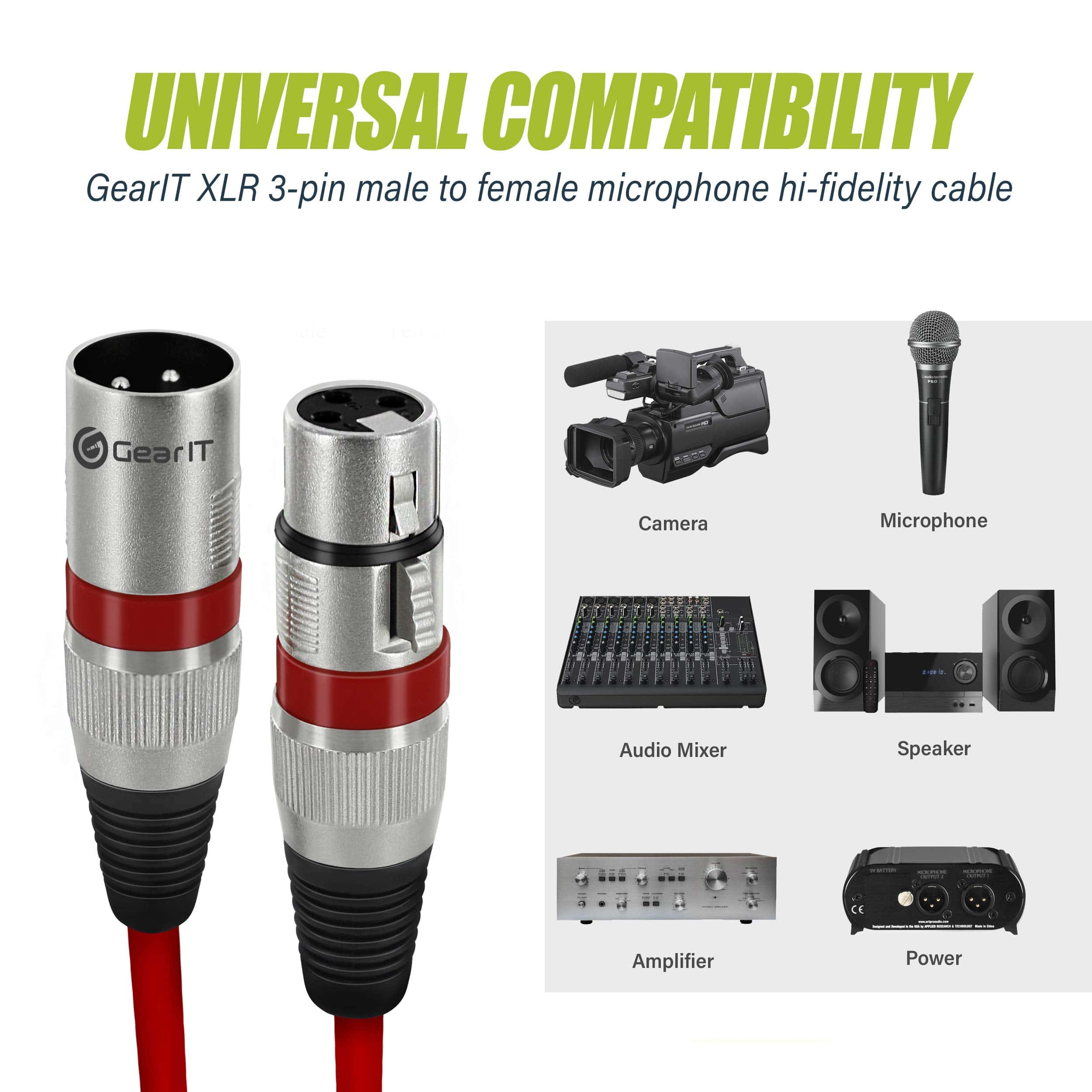 5. AMPLIA COMPATIBILIDAD – Los cables XLR de GearIT vienen en extremos XLR macho a hembra y tienen opciones de paquete múltiple: 1 paquete, 2 paquetes, 6 paquetes, 10 paquetes. Varios longitudes de cable XLR como: 1.5 pies, 100 pies (30m), 150 pies (45m), 200 pies (61m). Busca los Cables XLR de GearIT para encontrar todos nuestros cables XLR de micrófono.