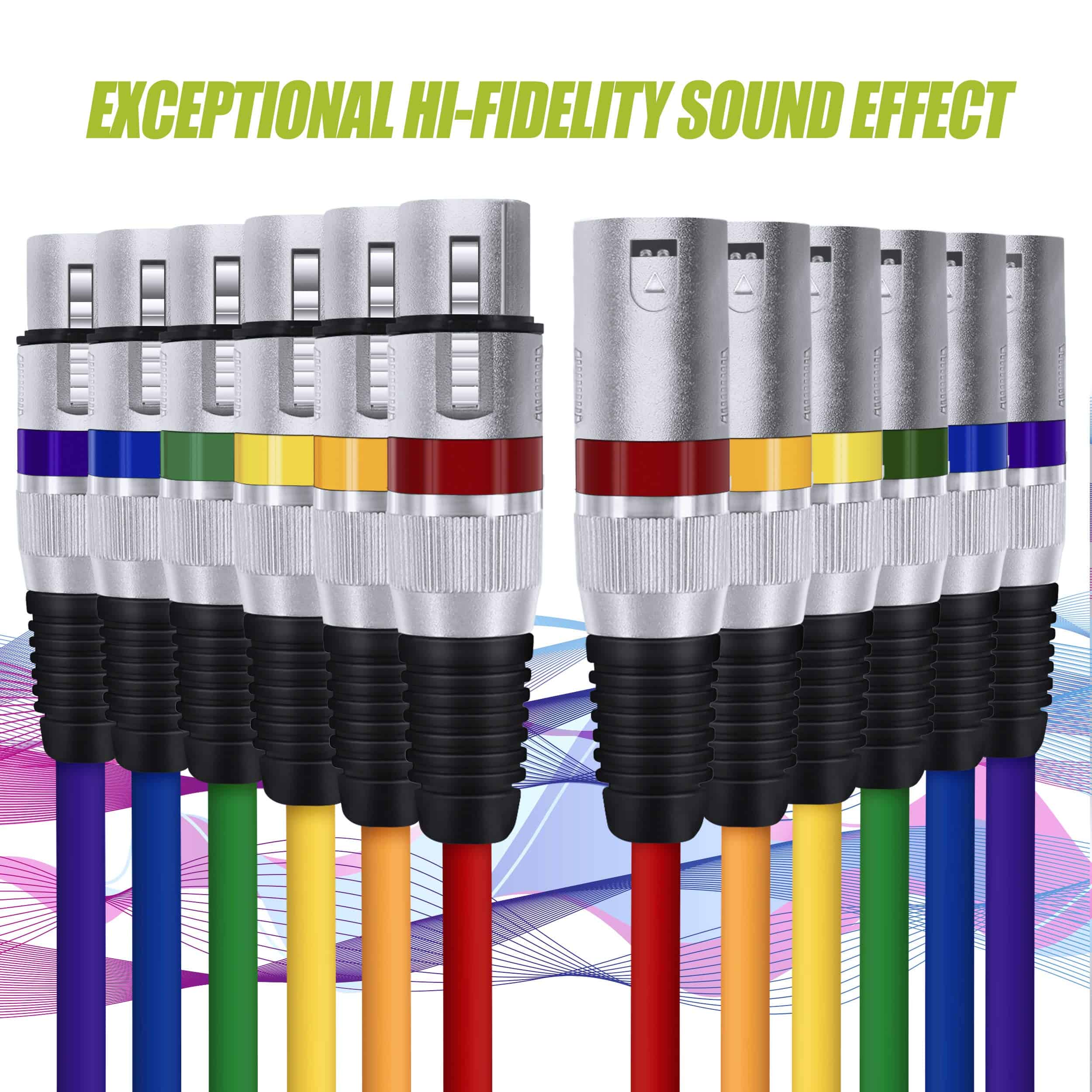 1. CABLE DE MICRÓFONO XLR CODIFICADO POR COLORES – Los cables XLR de colores de GearIT vienen en 6 colores diferentes (rojo, naranja, amarillo, verde, azul, morado) para una fácil coincidencia de colores y seguimiento para los cables de micrófono inalámbricos, mezclador de audio o cables de micrófono.