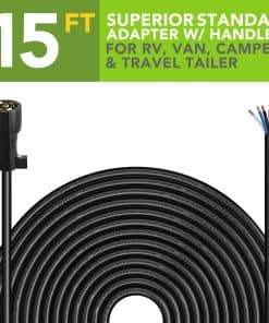 El cable de remolque de 7 vías de uso rudo Leisure Cords es la solución perfecta para mantener el cableado de su remolque organizado y funcionando de manera eficiente. Con un conector de doble puntas impermeable y resistente a la corrosión, este cable de 15 pies es ideal para conectar todas las luces y funciones de su remolque de RV, caravana, furgoneta de alimentos u otros vehículos remolcados. Con la hoja de cobre moldeada en el enchufe de uso rudo, la conexión de los cables es rápida y sencilla, lo que le ahorra tiempo y molestias. ¡No deje que un mal cableado arruine su aventura en la carretera, invierta en el cable de remolque de 7 vías de uso rudo Leisure Cords hoy mismo!