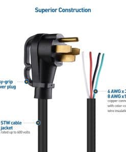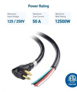 Cable Matters 4 Prong Replacement 50 AMP RV Power Cord (NEMA 14-50P a 3 Hilos) – 25 Pies