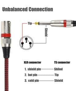1. Aplicaciones: Este cable XLR macho a 1/4″ TS mono está diseñado para entregar señal desbalanceada desde el puerto de 1/4 de pulgada al puerto de entrada XLR. Se utiliza principalmente para conectar instrumentos con mezcladores o sistemas de sonido, conectar teclados a interfaces de audio, etc.