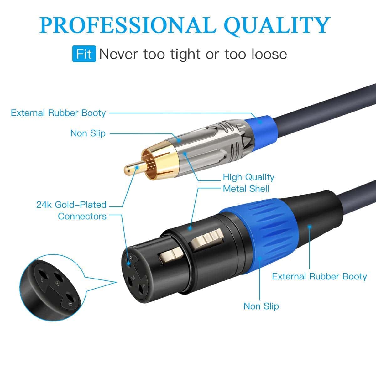 Cable XLR a RCA JOLGOO, XLR Hembra a RCA Macho, 2 a 2,