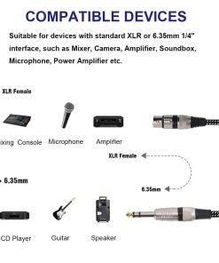 El Cable de Micrófono Balanceado XLR de 3 Pines 1/4 Macho a Hembra es la elección sensata para interconectar micrófonos, equipos de estudio o iluminación de escenario. Este cable completo cuenta con un suave revestimiento de PVC y trenzado de nylon para un uso y almacenamiento fácil; Conectores de metal resistente con contactos de níquel para reducir la oxidación. Los conductores de cobre libre de oxígeno están envueltos en un blindaje de trenza de cobre para proporcionar un sonido puro y libre de ruido. Especificaciones: – Cobertura AL 125% – Blindaje 65% Trenzado – Conductores OFC calibre 22 – Envoltura de hilo de algodón para reducir el ruido – Conectores Níquel/Oro bañados – Cumple con la normativa RoHS – Garantía de 18 meses Contenido del paquete: 1 Cable de Micrófono Balanceado XLR TRS de 30 FT de 1/4 de Pulgada Macho a Hembra.