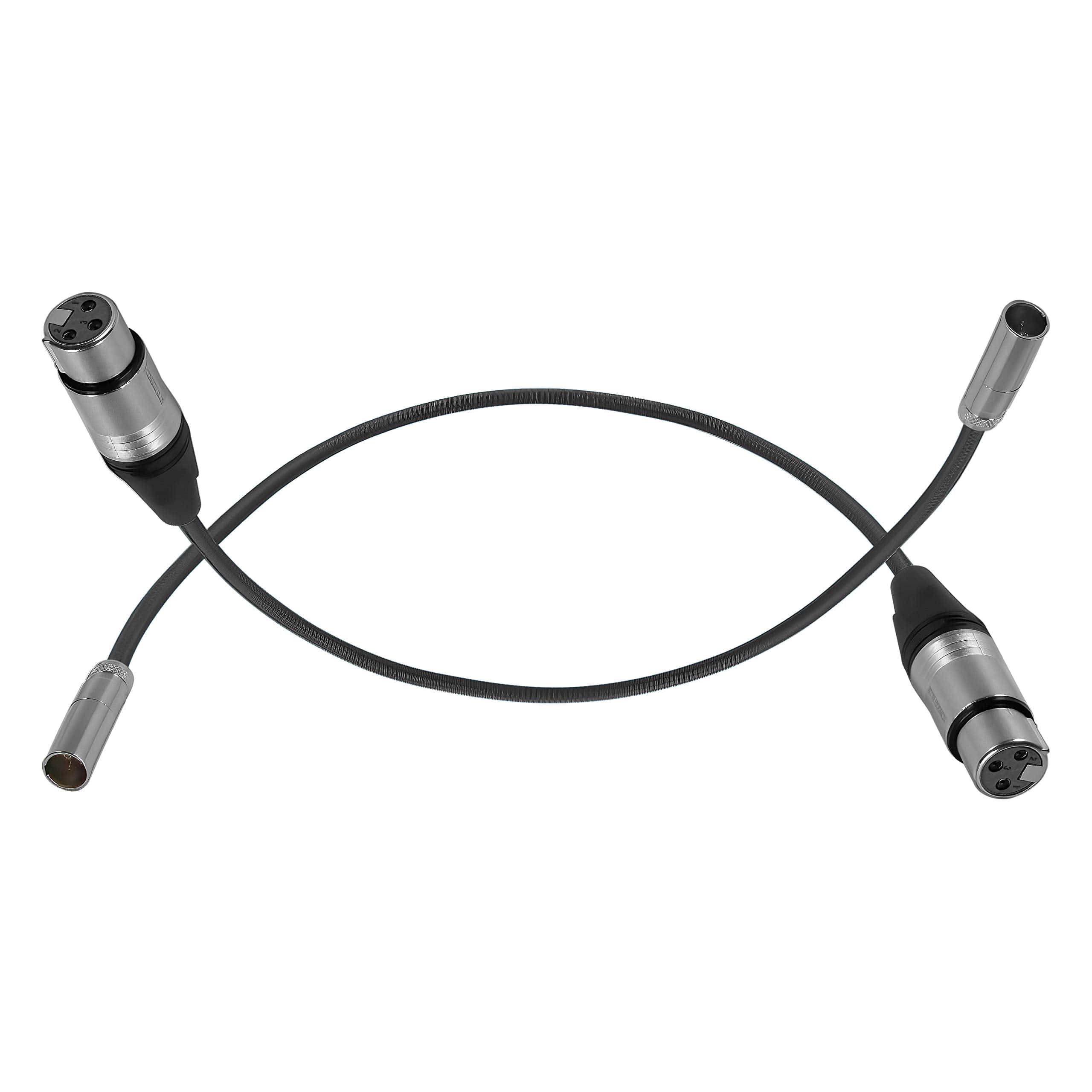 Conecta un micrófono o mezclador de audio a tu Blackmagic Pocket Cinema Camera 6K o 4K con este paquete de 2 cables de Audio Mini-XLR Macho a XLR Hembra. Estos cables de 16″ de longitud se conectan a las entradas mono de 48V de la cámara con el conector mini-XLR macho de 3 pines, y en los otros extremos son conectores estándar XLR hembra de 3 pines para conectar a tu micrófono o mezclador.