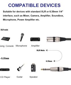 4. Compatible y flexible: Cable xlr macho a 1/4″ 6.35mm trs compatible con equipos con conectores xlr de 3 pines y toma de 6.35mm como mezclador, cámara, amplificador, caja de sonido, micrófono, amplificador de potencia.