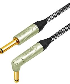 25 pies – Audioblast HQ-1-BRAID (Negro + Blanco) Duradero y Flexible – Doble Blindado (100%) – Cable de Guitarra Bajo Instrumento, Cable Profesional con Conector mono dorado de 1/4 de pulgada en ángulo recto QM2R-AU de Amphenol y conector mono dorado de 1/4 de pulgada QM2P-AU de Amphenol. +++ El cable trenzado más flexible y ensamblado a mano en el mercado con una trenza de poliéster extremadamente suave, fácil de enrollar y extremadamente duradera. A diferencia de las trenzas de nailon que proliferan en el mercado, las trenzas de poliéster son más respetuosas con el medio ambiente (es decir: reciclables), los colores no se desvanecen rápidamente y son resistentes a la estática +++ EL HQ-1 ES UN CABLE FLEXIBLE Y PUEDE SER RETORCIDO Y ENROLLADO FÁCILMENTE ENTRE TU EQUIPO.