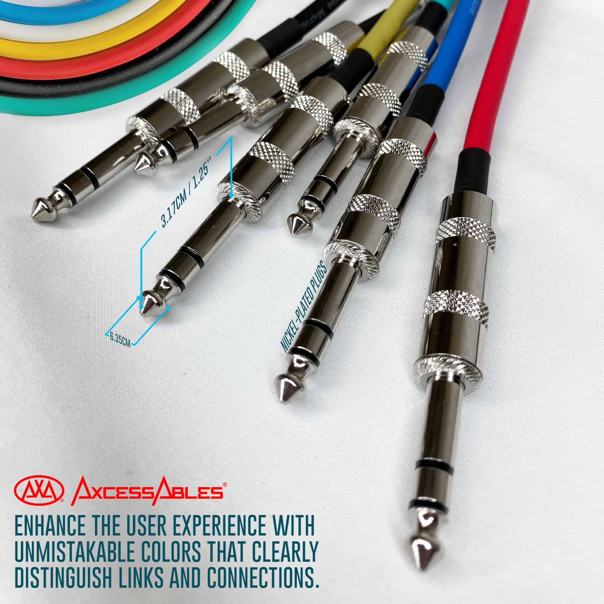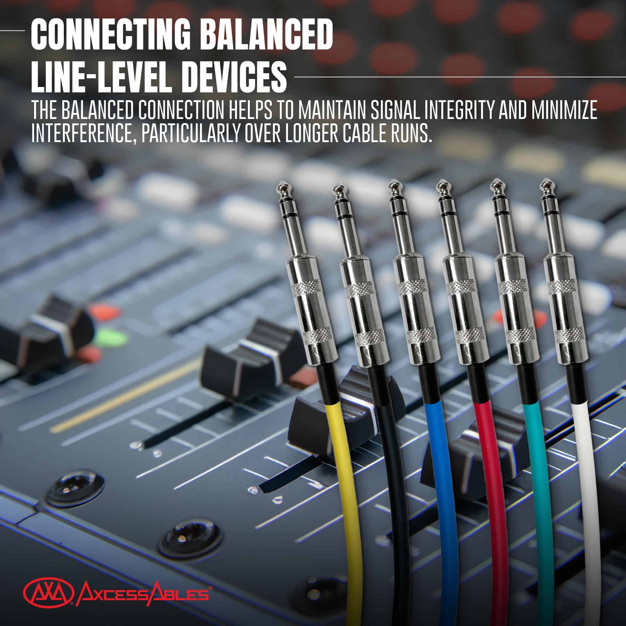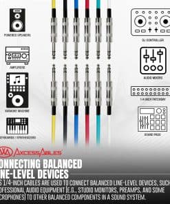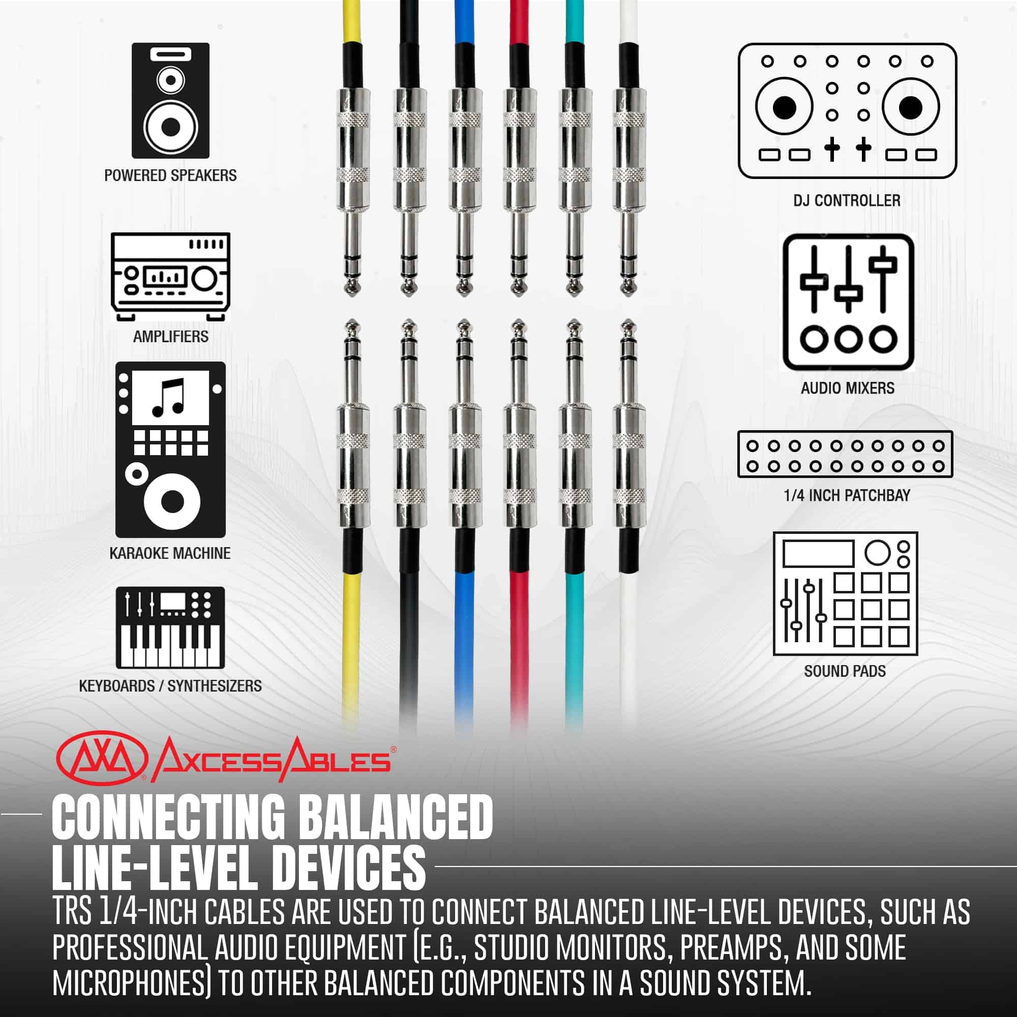 5. La conexión macho a macho balanceada estéreo TRS de 1/4 de pulgada (6.35mm) de AxcessAbles es un cable de audio versátil para instrumentos, estudios y diversas aplicaciones. Permite conexiones de audio balanceadas, vincula dispositivos de nivel de línea, conecta bucles de efectos, parches de sistemas de audio y garantiza una transmisión de audio balanceada de alta calidad.