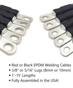 Los cables de batería de 4 AWG Ultra Flex EPDM están diseñados para ofrecer la mejor calidad y rendimiento para tus necesidades de energía automotriz. Hechos en EE. UU. con cobre puro al 99.9%, estos cables garantizan la máxima conductividad, flexibilidad y resistencia reducida. Los terminales sellados y estañados, prensados con una prensa hidráulica de 10 toneladas, aseguran una conexión segura y duradera, mientras que el termoencogible adhesivo previene la corrosión y protege contra aceites y combustibles. Disponibles como un solo cable en rojo o negro, o como un juego en tamaño de agujero terminal de 5/16 o 3/8, estas longitudes de cables se miden de ojo a ojo en los terminales. Perfectos para una amplia gama de aplicaciones, incluyendo coches, camiones, RV, sistemas de energía solar y cables convertidores, estos cables de batería de 4 AWG son garantía de calidad y fiabilidad. ¡Compra con confianza sabiendo que están hechos en EE. UU. en una prensa hidráulica para un prensado seguro y adecuado! ¿Necesitas un tamaño diferente? ¡Explora nuestra línea completa de cables de batería en varias longitudes y tamaños de calibre para encontrar el ajuste perfecto para tus necesidades de energía!