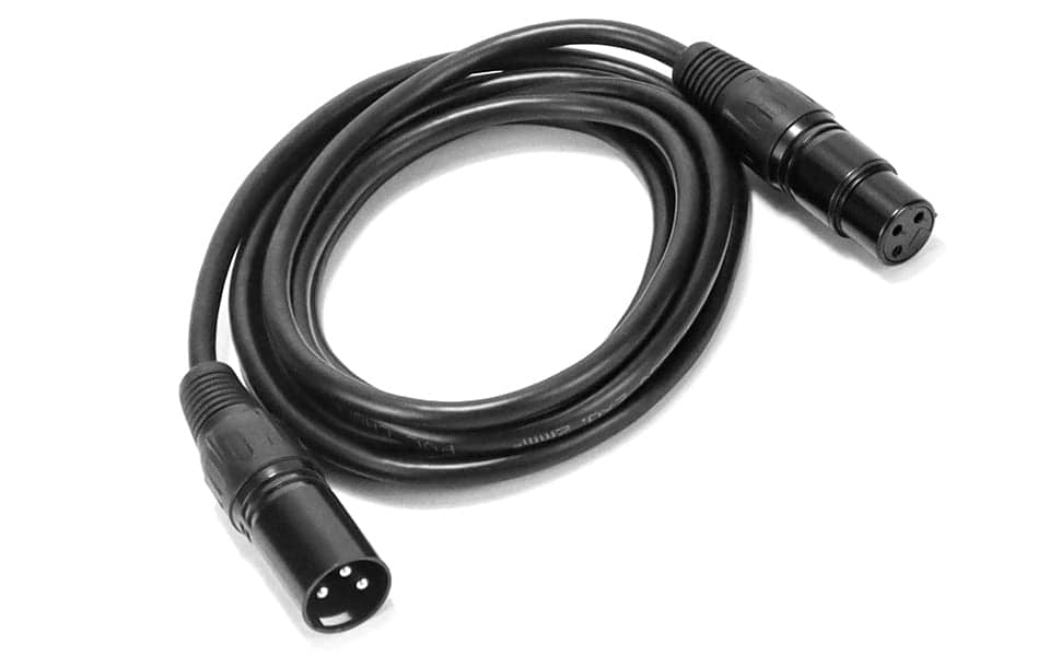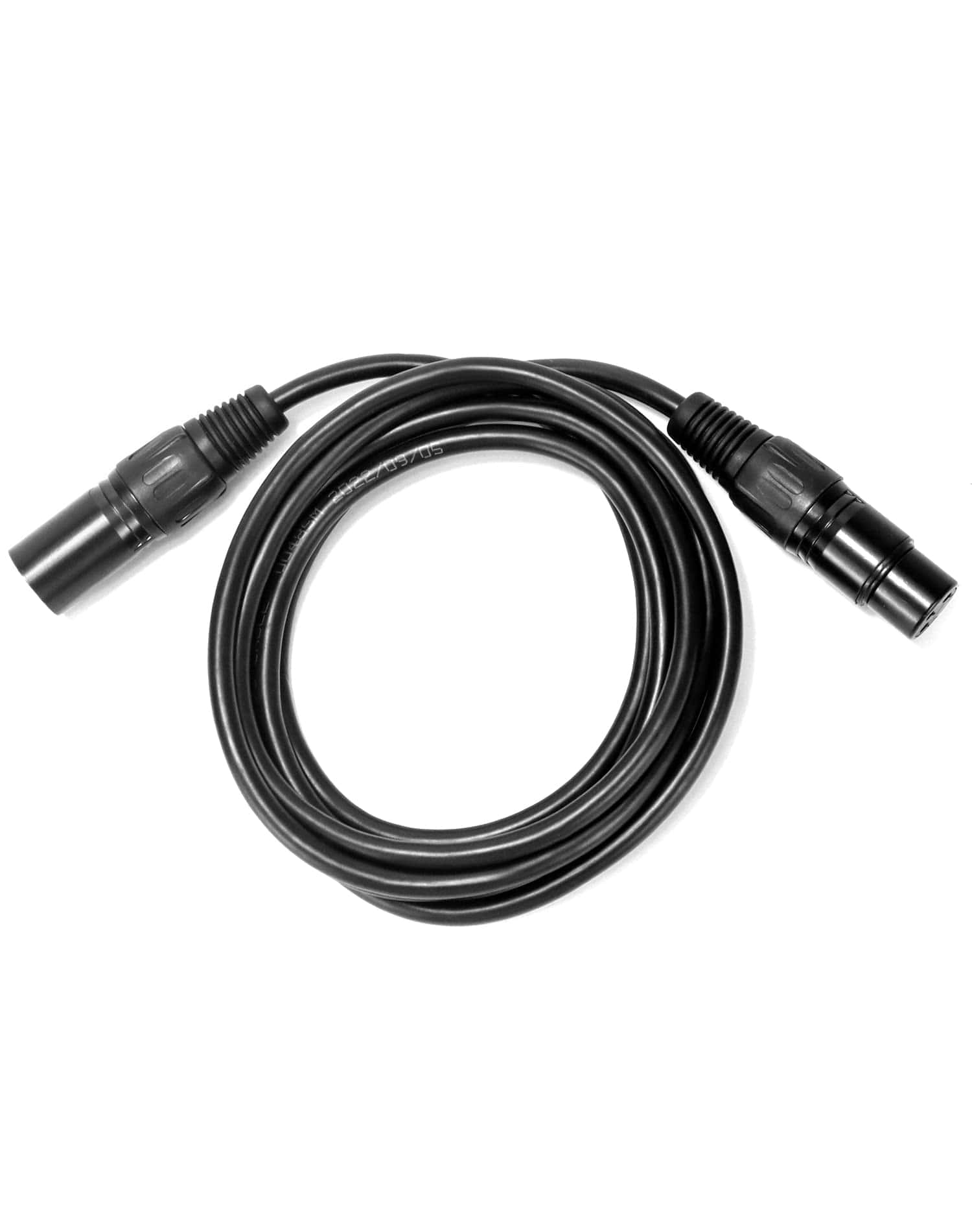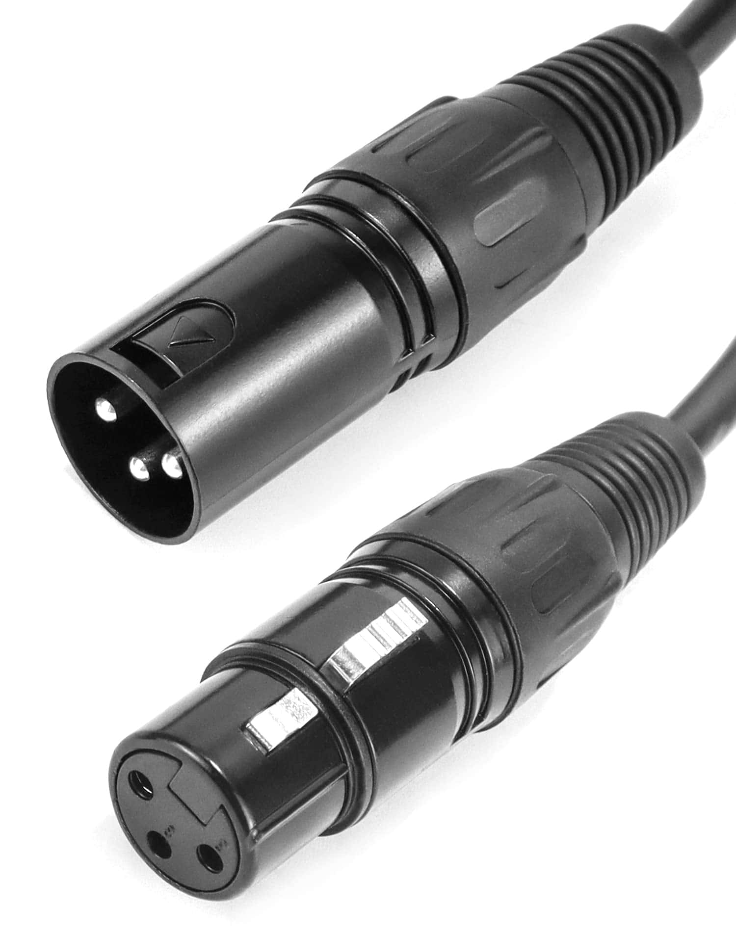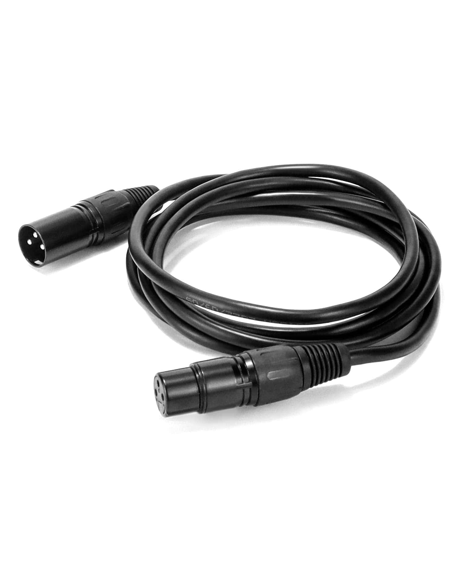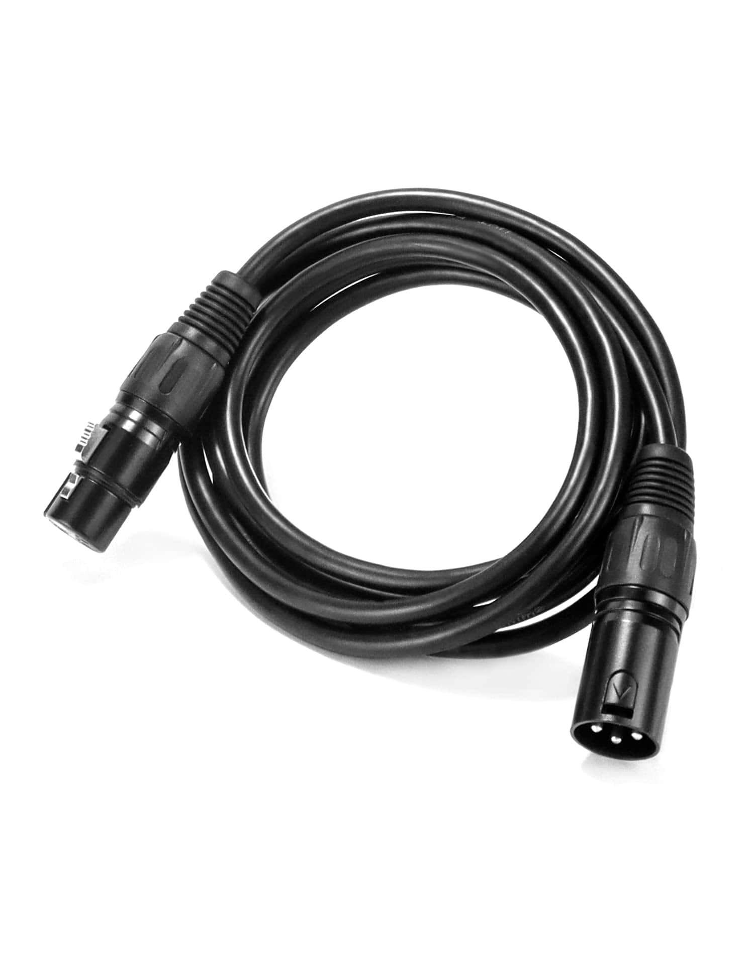 1. Conector Metálico Resistente: Cable de señal DMX de 3 pines XLR, macho a hembra, con un conector metálico resistente para garantizar una conexión firme y facilitar la conexión y desconexión.