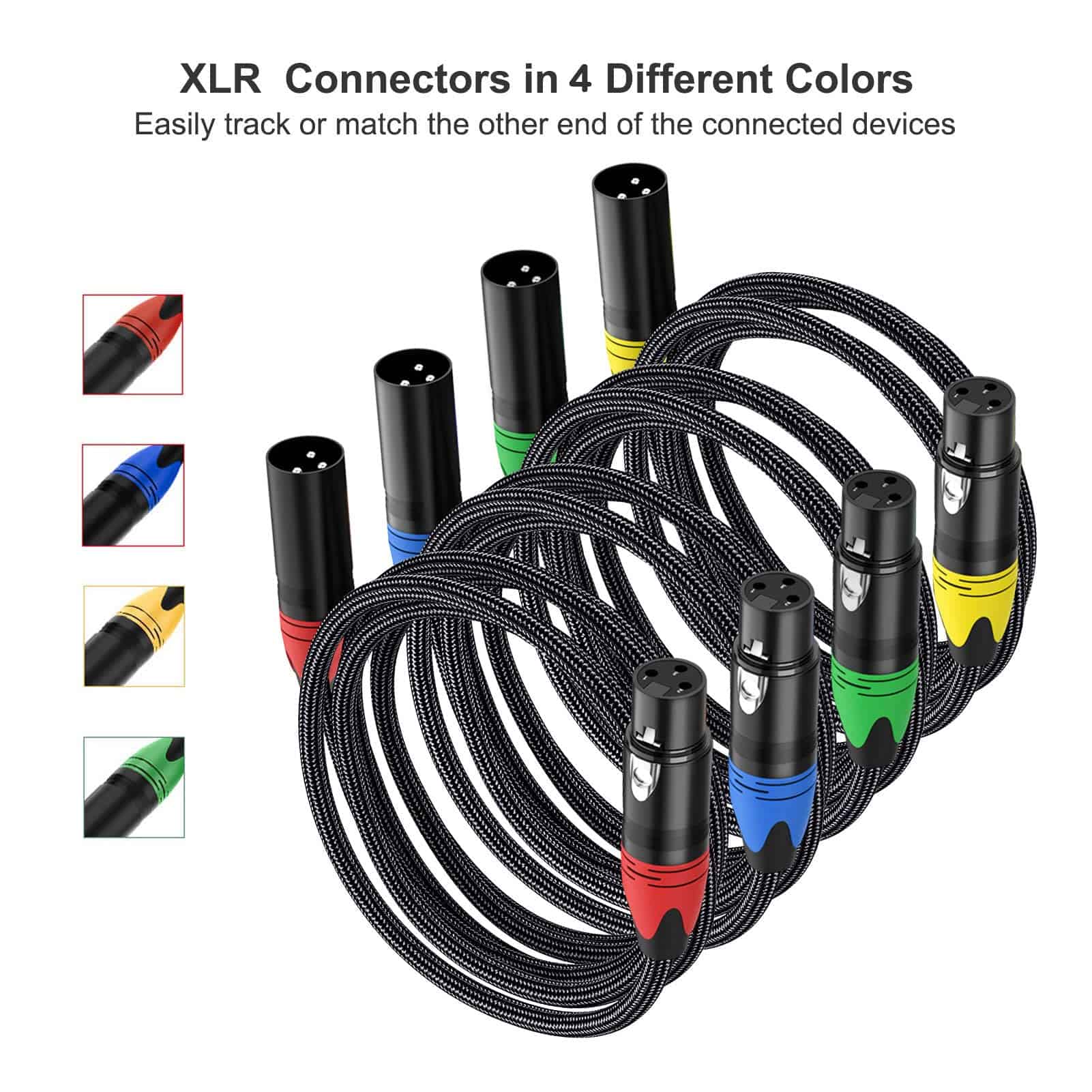 Cables XLR DMX Anewbig 6ft 4 Pack, Cable de Conexión XLR,