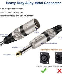 4. Compatible y flexible: Cable XLR macho a 1/4″ 6.35mm TRS compatible con equipos con conectores XLR de 3 pines y toma de 6.35mm como mezcladores, cámaras, amplificadores, cajas de sonido, micrófonos, amplificadores de potencia.
