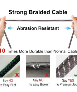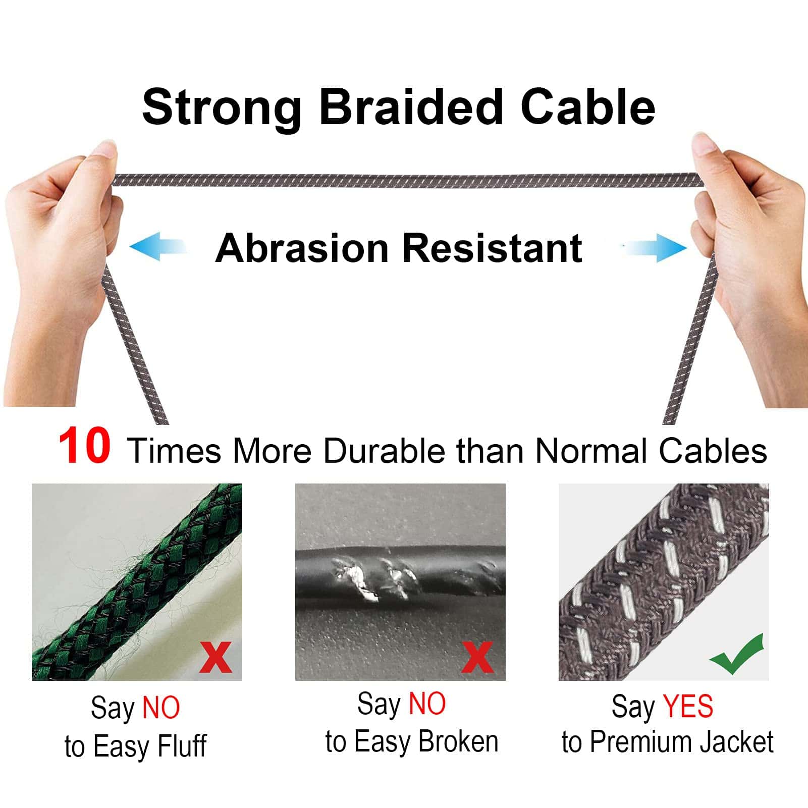 4. CABLE FLEXIBLE DE ALTA RESISTENCIA — Cordones de PVC suaves y flexibles con chaqueta trenzada premium, 10 veces más duraderos que los cables normales, vida más larga que los cables trenzados de nailon normales. Sin pelusa ni pelusa.