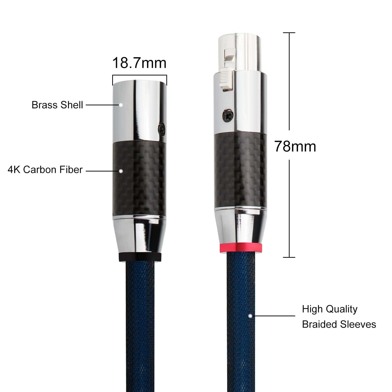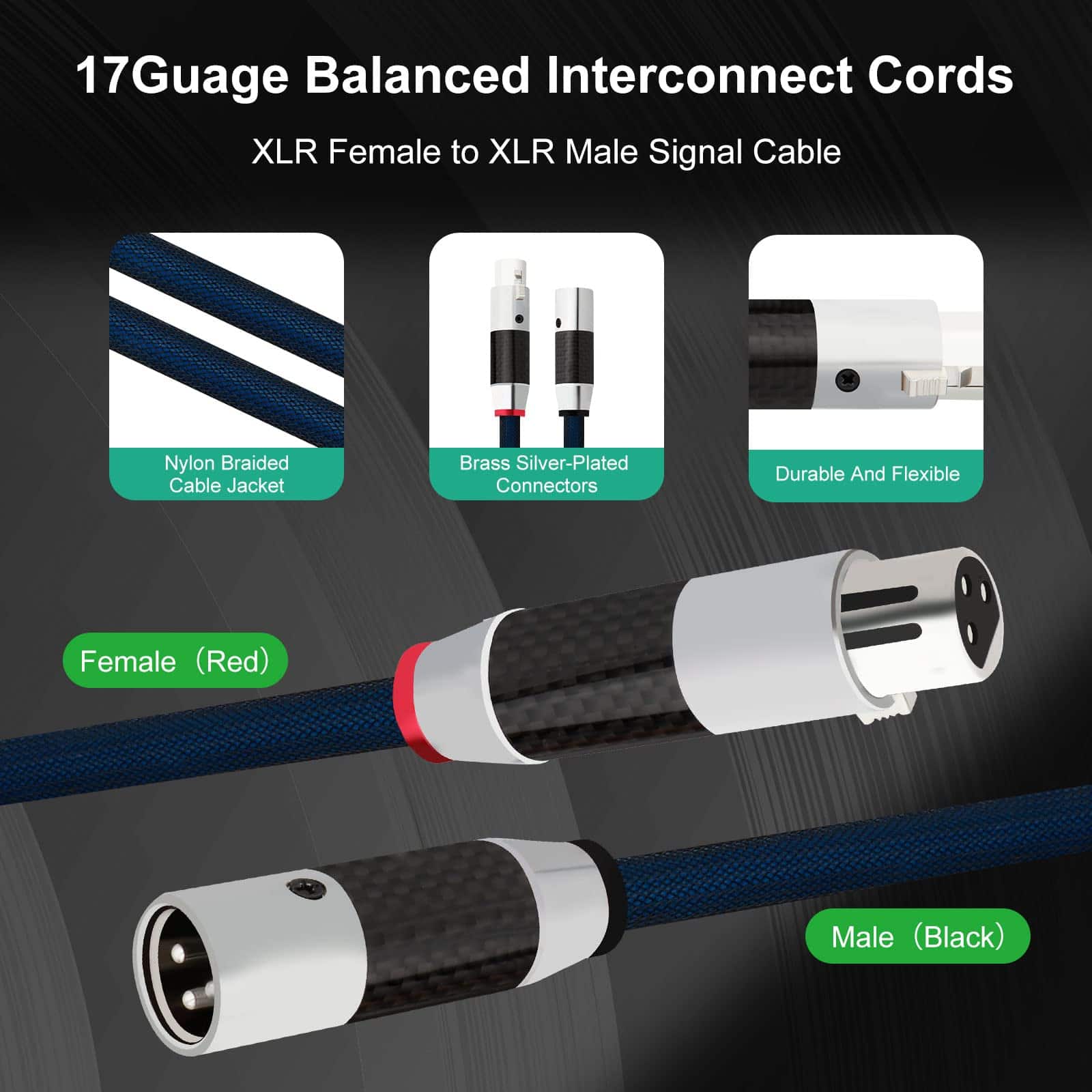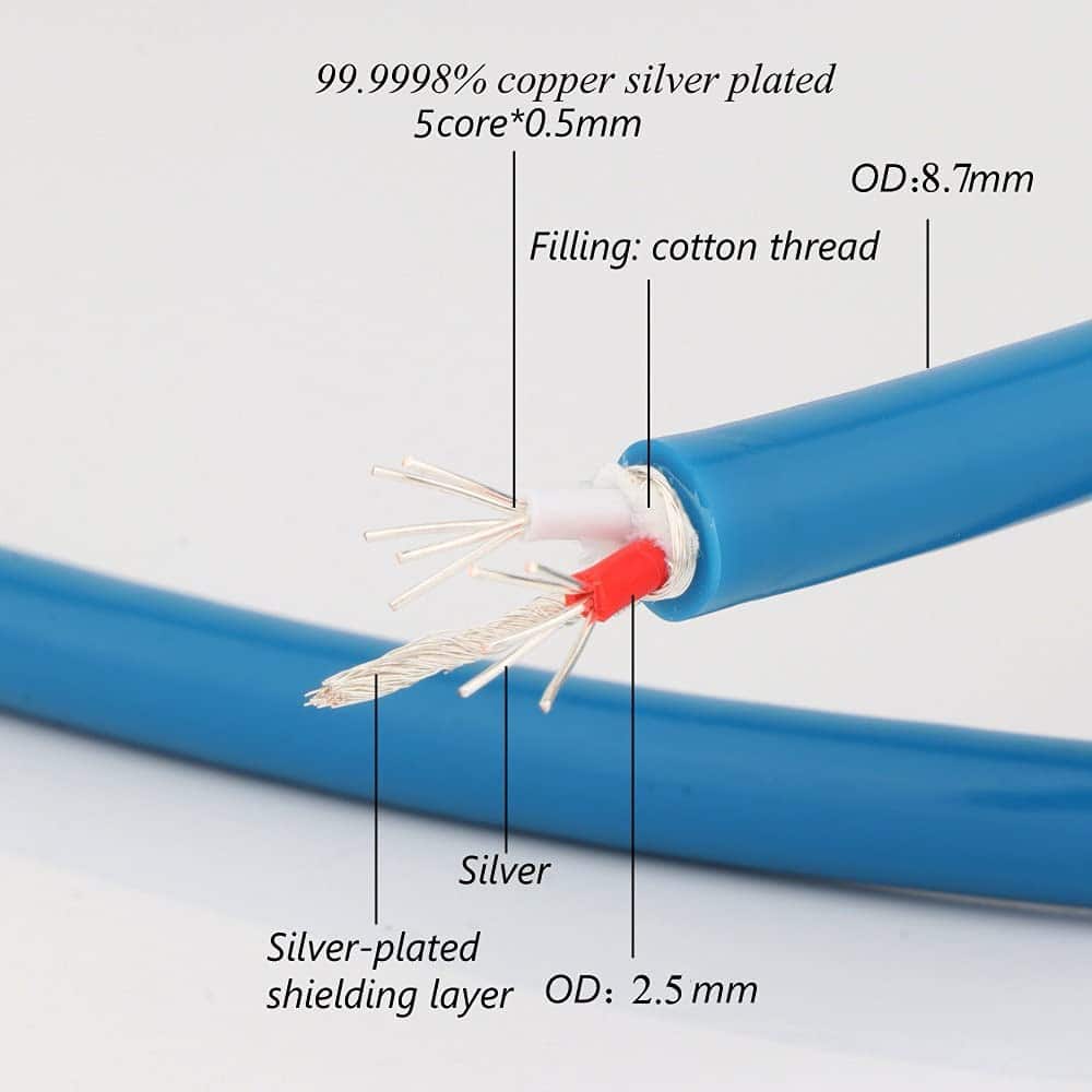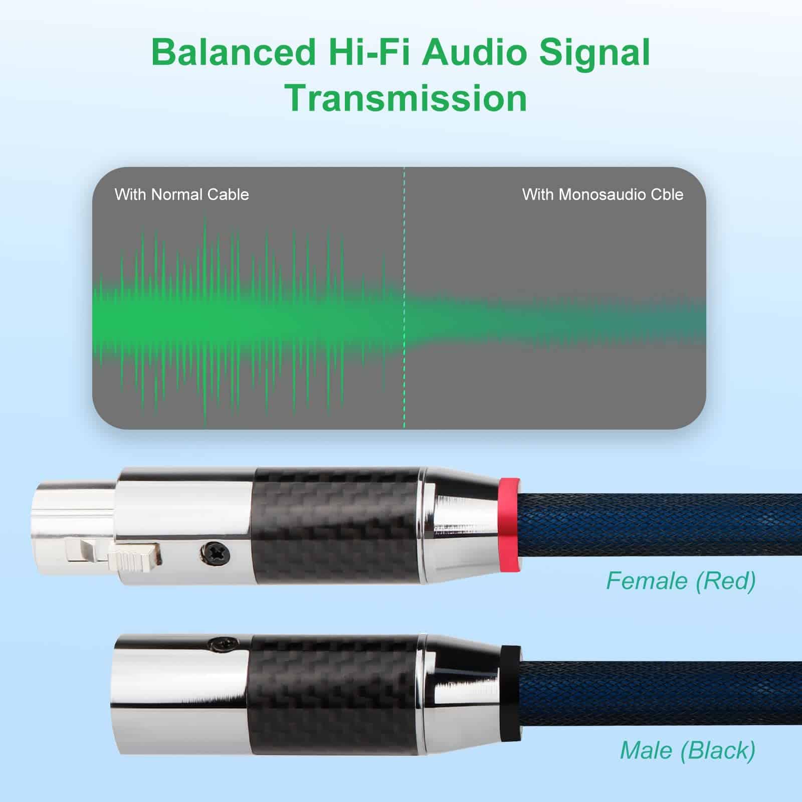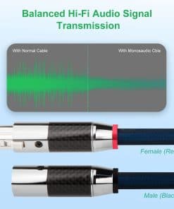 1. Material premium: El cable XLR a XLR está hecho de cobre monocristalino 5N 99.9998% + conectores plateados en plata (Brass de 17AWG, cubierta de algodón) + funda de cable trenzada de nailon, excelente rendimiento en antinterferencia, velocidad de transferencia de señal de alta velocidad, transmisión más estable.