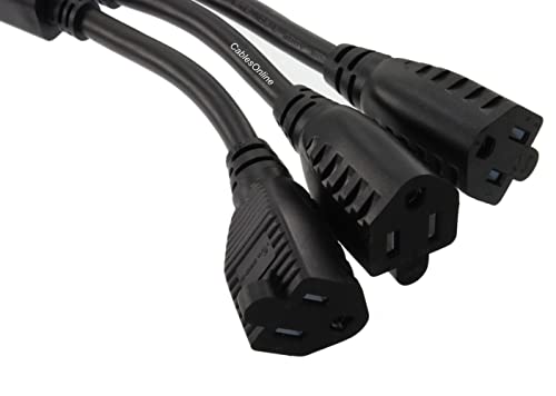 CablesOnline, Cable divisor en Y de 3 vías de 16 pulgadas 14AWG para iluminación de escenario gris con conector de salida de corriente a 3x NEMA 5-15R Hembra Adaptador divisor de energía, PC-KY301