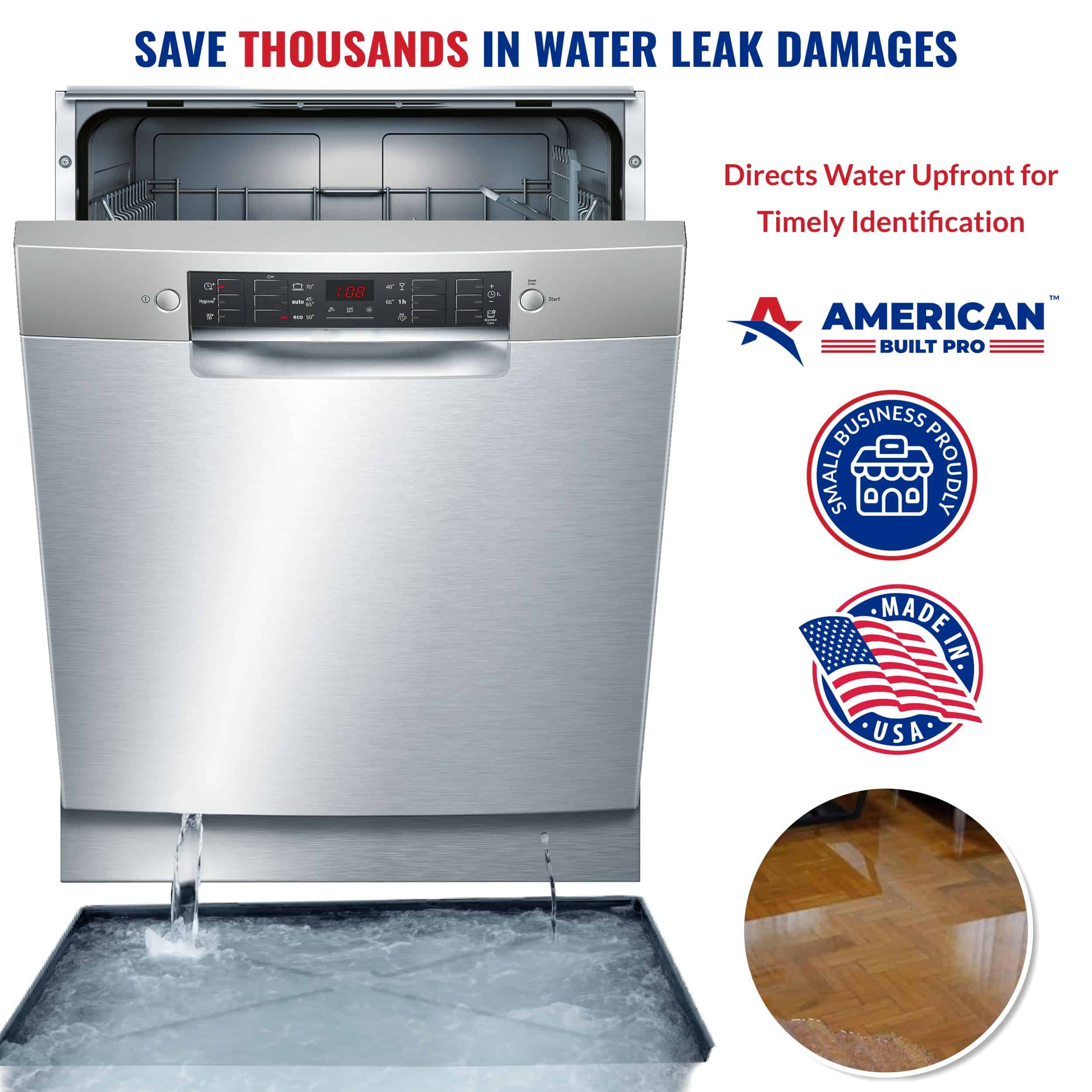 1. Previene daños por agua en pisos: la cacerola de drenaje para lavavajillas American Built Pro protege su piso y gabinetes de fugas de lavavajillas, condensación de agua y fallas de mangueras. Proteja su costoso piso, gabinetes y equipo de daños por agua con una advertencia temprana de nuestra cacerola de drenaje para lavavajillas.