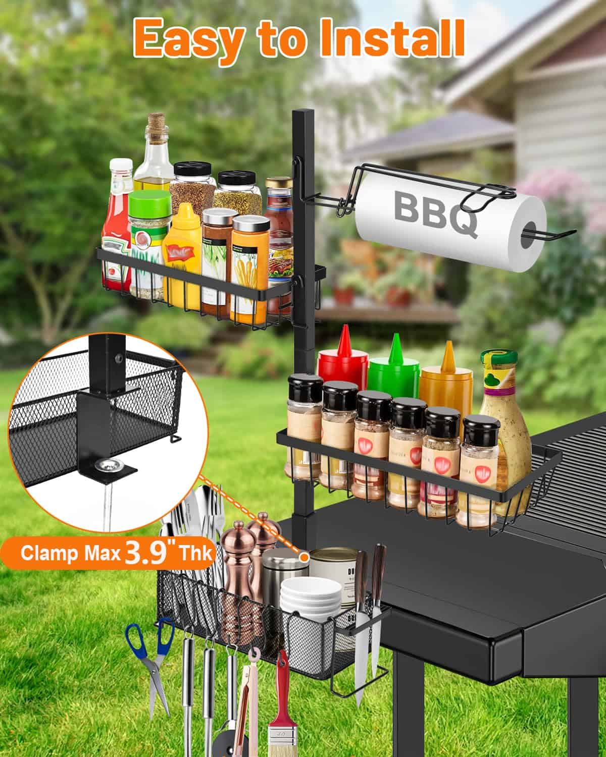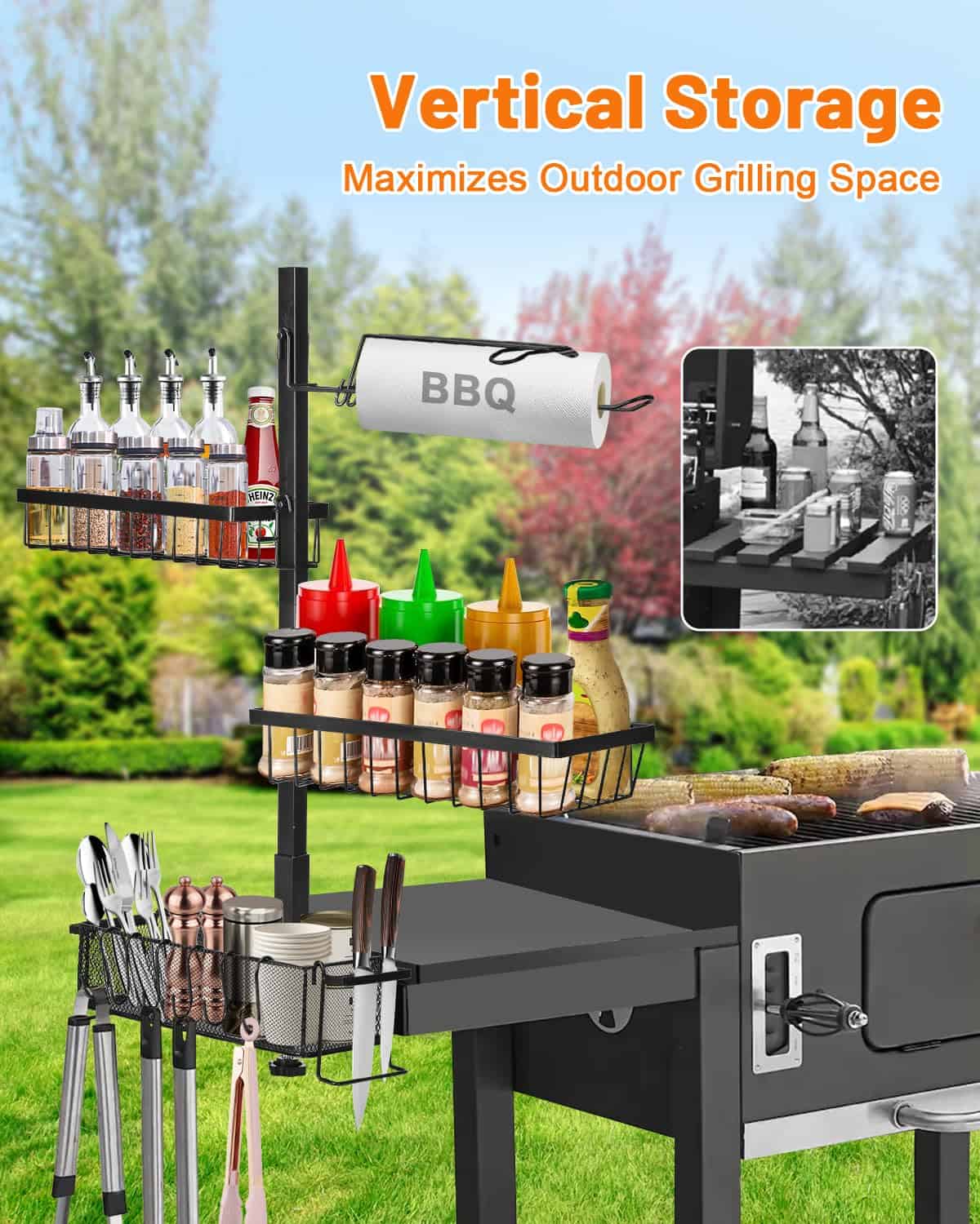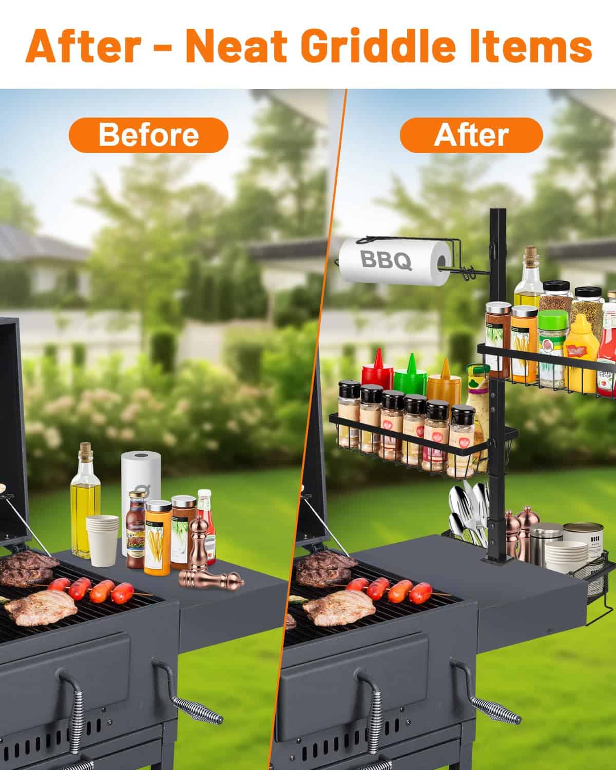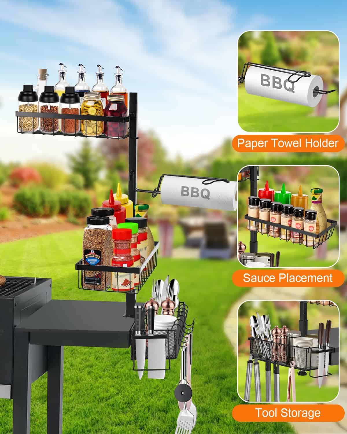 5. Práctico y Estéticamente Agradable Con una estructura de rejilla abierta, es estéticamente agradable y conveniente para ver y acceder a los objetos. Su apariencia sencilla es compatible con varios equipos de parrillada. Mientras mejora la experiencia de parrillar, también agrega un toque ordenado y hermoso al entorno de cocina. Es un organizador de BBQ perfecto y una gran adición a cualquier configuración de parrilla.