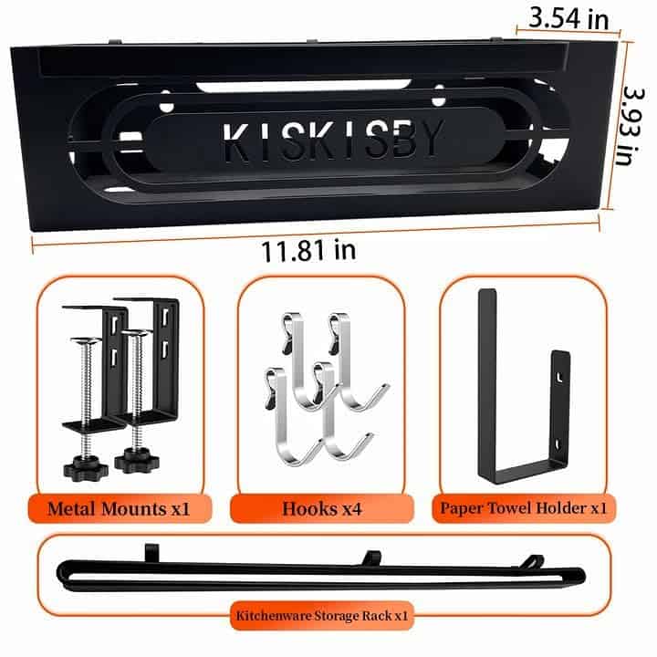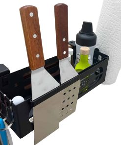 1. Conjunto perfecto de accesorios para parrilla Blackstone El set de Caddy para Parrilla incluye: 1 caddy para parrilla, 1 portarrollos de papel, 2 tornillos, 5 ganchos en J, 2 soportes de montaje, 2 juntas de silicona antideslizantes, 2 tornillos largos para pared (solo se utilizan en cocinas o baños). Las juntas de silicona gratis mantienen el caddy de la parrilla pegado firmemente a su parrilla y aíslan el contacto de metal con metal para proteger la superficie de su plancha de ralladuras. Los ganchos en J extraíbles ayudan a cargar más herramientas de parrilla y colgarlas en cualquier lugar.