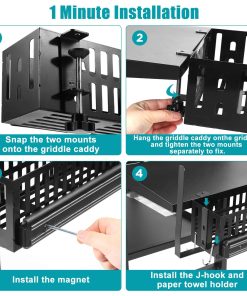 1. Mantenga sus Herramientas de Parrilla Organizadas: Este caddy para plancha cuenta con un portarrollos de papel, 4 ganchos J y un soporte magnético para proporcionar suficiente espacio de almacenamiento para todos sus utensilios de parrilla, botellas de aceite, salsas, condimentos, raspadores, espátulas y más. ¡No más mostradores desordenados o herramientas fácilmente volcadas!.