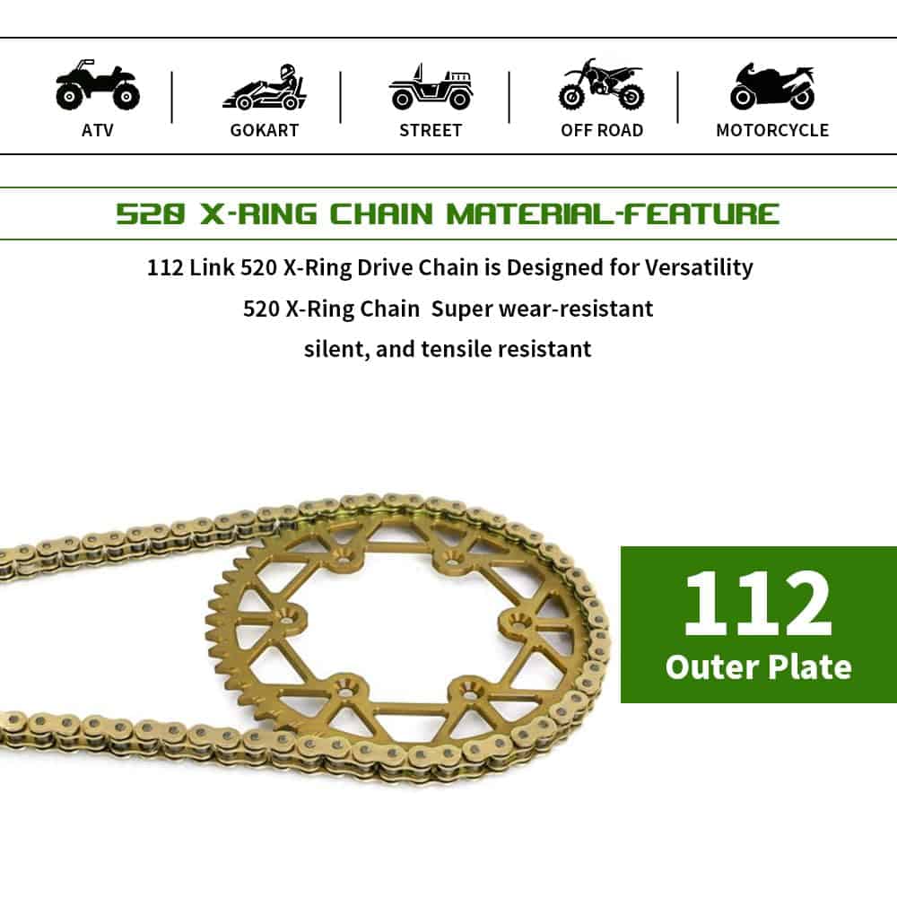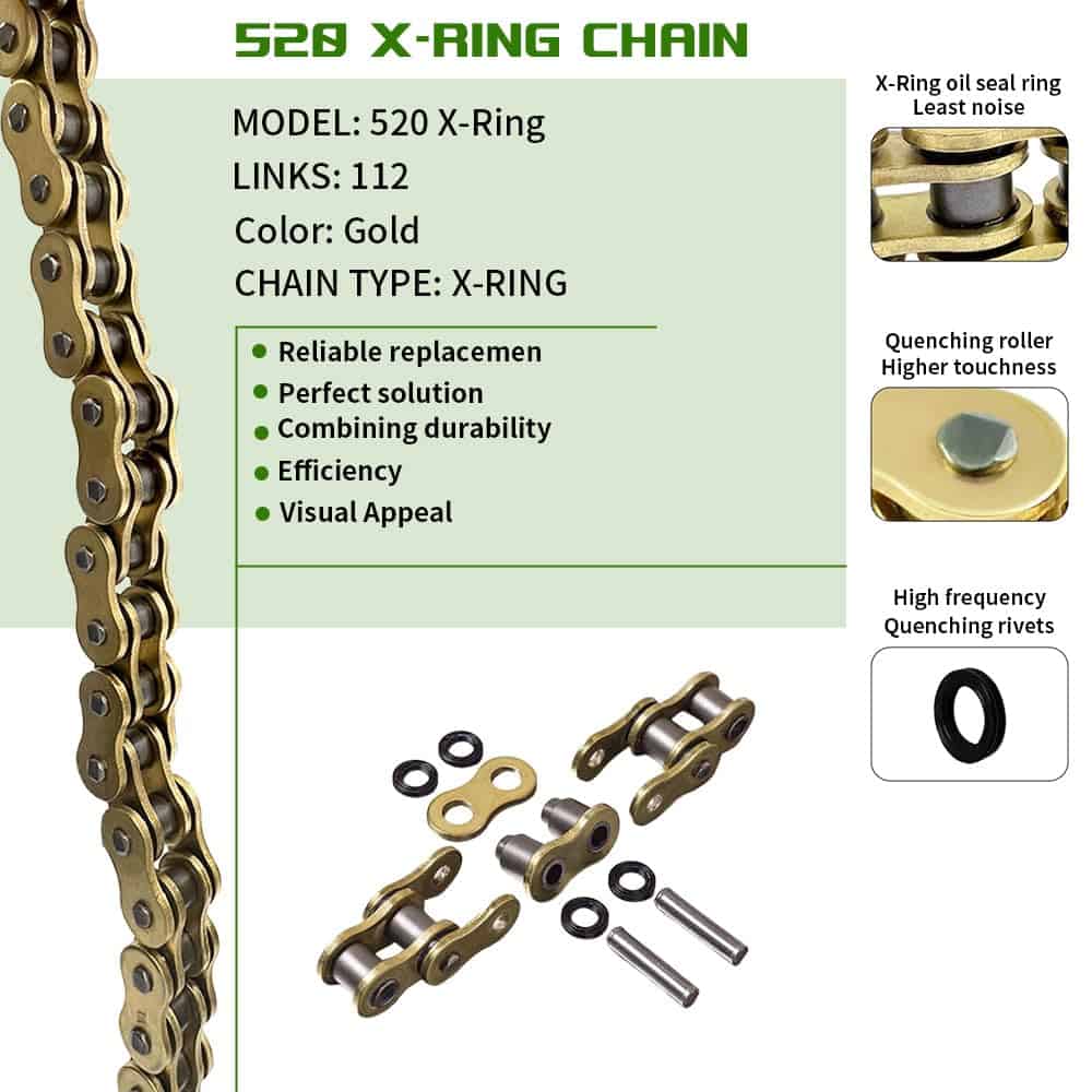 Cadena 520 X-Ring de Oro 112 Eslabones – Durabilidad y