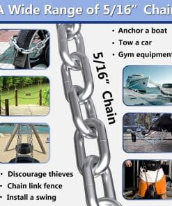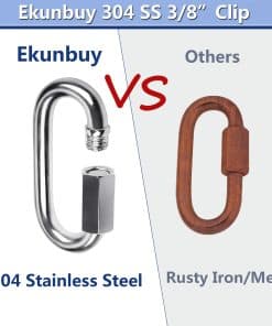 Ekunbuy es una empresa especializada en la producción de varios productos de acero inoxidable, con nuestra propia fábrica. Ofrecemos productos de acero inoxidable que garantizan durabilidad, resistencia a la corrosión, altas cargas de trabajo y son ideales para exteriores. Gancho de resorte, gancho rápido, cadena de remolque, cadena, cuerda de seguridad, pernos de ojo, tensor, anillo en O, anillo en D, alicates de pesca, kit de barandilla de cable, protectores de manga para barandilla, etc. Examinamos todos los productos cuidadosamente antes del envío. Estamos encantados de servirle, por favor no dude en contactarnos en cualquier momento. Por qué otros eligen la Cadena de Remolque de Ekunbuy: Clasificación de 1300 lbs 6.5 pies de largo con dos ganchos rápidos de 2.55 pulgadas Las cadenas de seguridad son requeridas por ley en la mayoría de los estados Cruce sus cadenas mientras remolca para mayor seguridad Accesorio de remolque perfecto La cadena de seguridad hace que sea fácil conectar su remolque y vehículo de remolque y estar listos para salir. Material: Cadena: acero inoxidable 304 Gancho: acero inoxidable 304 Límite de carga de trabajo: 1300 lbs Tamaño: Número de Cadena: M6(1/4″) Longitud de Cadena: 6.5 pies Grosor de la Cadena: 1/4 pulgadas Eslabón de la Cadena: 1.73×1.26×0.87×0.24 pulgadas (LOxLIxANxG) Número de Gancho: M7(9/32″) Longitud del Gancho: 2.55 pulgadas Grosor del Gancho: 0.27 pulgadas Más Aplicaciones: Uso para ensamblar columpios, fijar hamacas, atar correas de carga o cuerdas, colgar sacos de boxeo, sillas, cestas, casas de pájaros grandes, cercas, vehículo de remolque, fitness, halterofilia, cadena de anclaje, transmisión, antirrobo (combinación de candado por sí mismo) etc. Características: Acero inoxidable 304 Mayor dureza Resistente a la humedad Resistente a ácidos y álcalis Antioxidante Superficie brillante y brillante No tóxico Ecológico y seguro Diseño sólido Resistente a la abrasión Resistente a cargas pesadas Lo que obtienes: 1 pc 6.5′ 1/4″ Cadena de Acero Inoxidable 2 pcs Ganchos M7