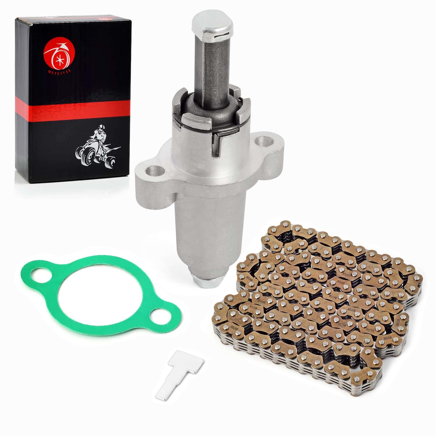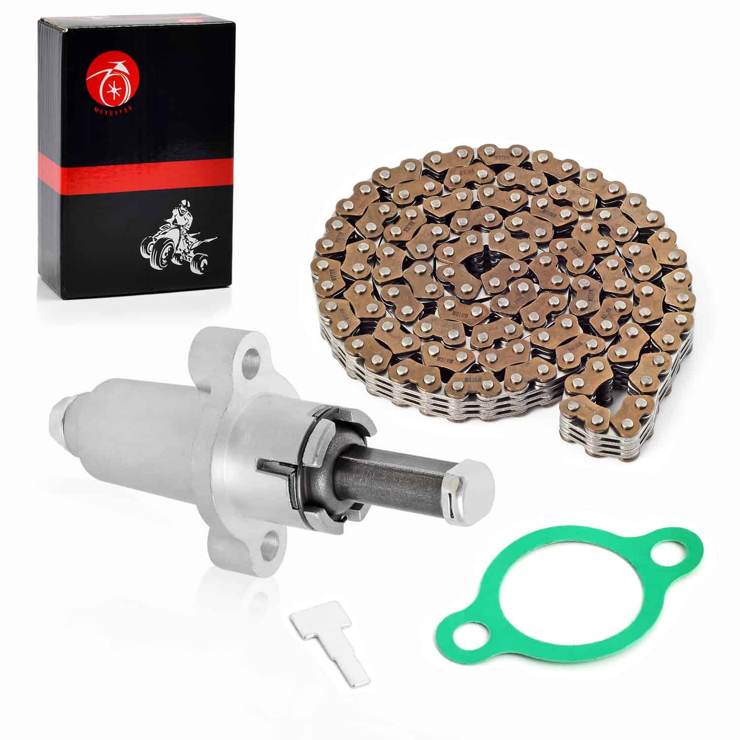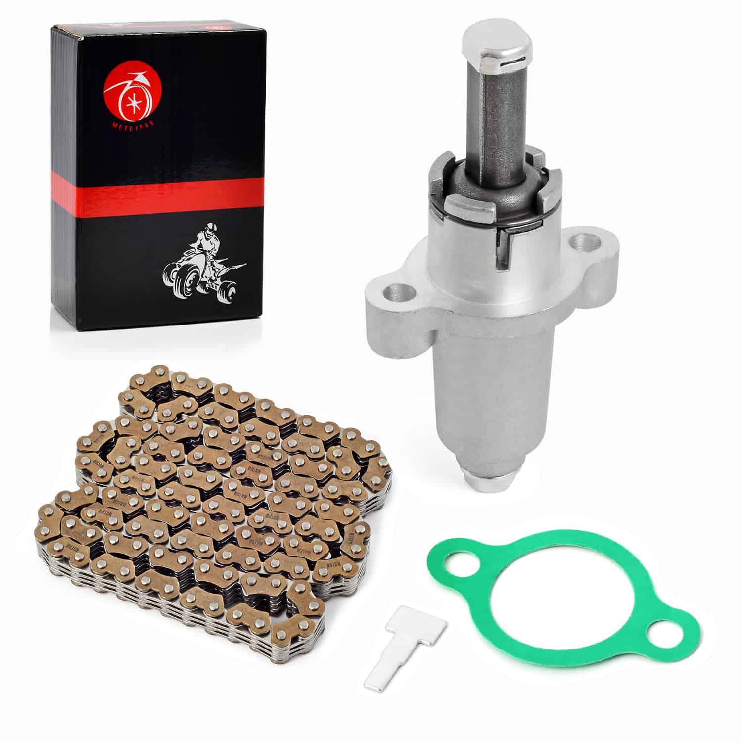 Esta cadena de distribución y tensor de tiempo es adecuado para una variedad de modelos de Suzuki LT-A500X LT-F500F Kingquad 500 Vinson 500 y Arctic Cat 500. Viene con un tensor de marca nueva y una cadena de distribución de 124 eslabones. Los números de parte del fabricante son 3402-353, 3402-136, 12760-09F00, 12830-32E00. Antes de la compra, asegúrese de verificar los modelos compatibles en nuestra página para una instalación sin problemas. Ofrecemos un servicio posventa las 24 horas y una garantía de 1 año en nuestros productos para su tranquilidad.