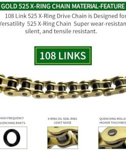 Nuestra Cadena de Motocicleta Gold 525 X-Ring está diseñada para cumplir con las exigentes necesidades de las motocicletas de alto rendimiento. Los anillos X de NBR en esta cadena están específicamente diseñados para proporcionar capacidades de sellado superiores, lo que ayuda a mantener la lubricación, reducir el desgaste.