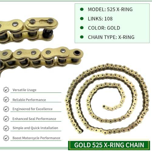 Cadena de Motocicleta WEICHENGXIN Gold 525 X-Ring 108 Eslabones x 1;