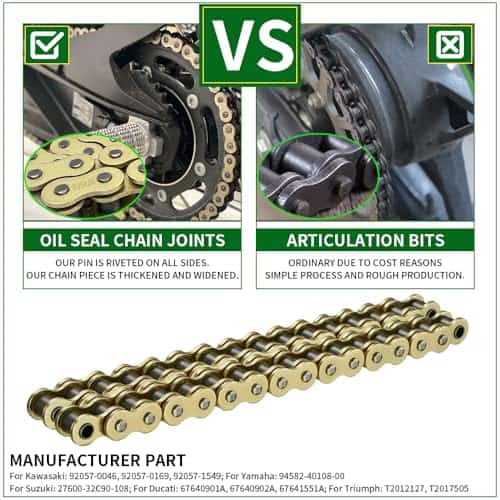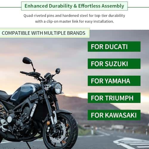 Esta cadena de motocicleta cuenta con un enlace maestro de clip, facilitando una actualización rápida y sin complicaciones, asegurando que puedas mejorar fácilmente la cadena de tu moto.