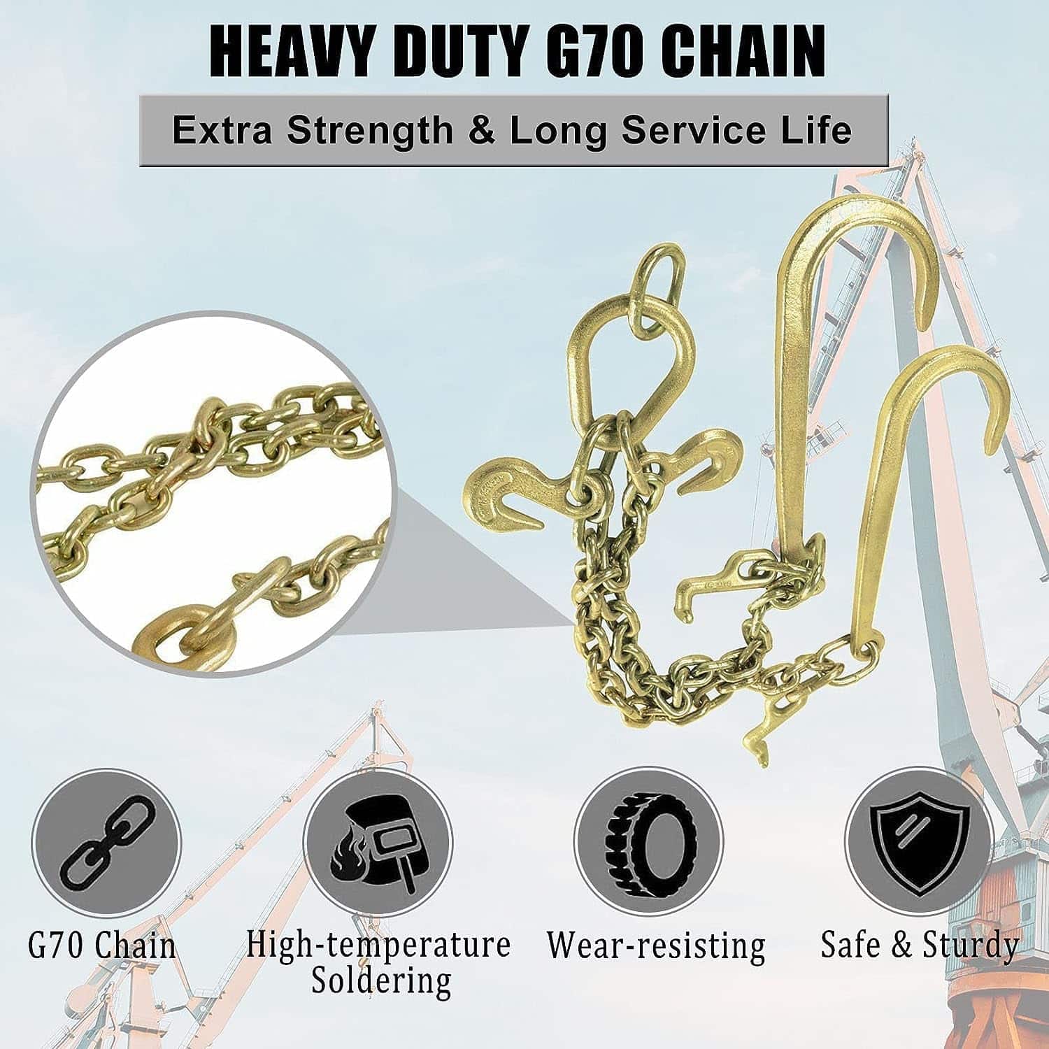 Cadena de remolque en V de acero G70 TYFYB 3/8″ X 2′ con