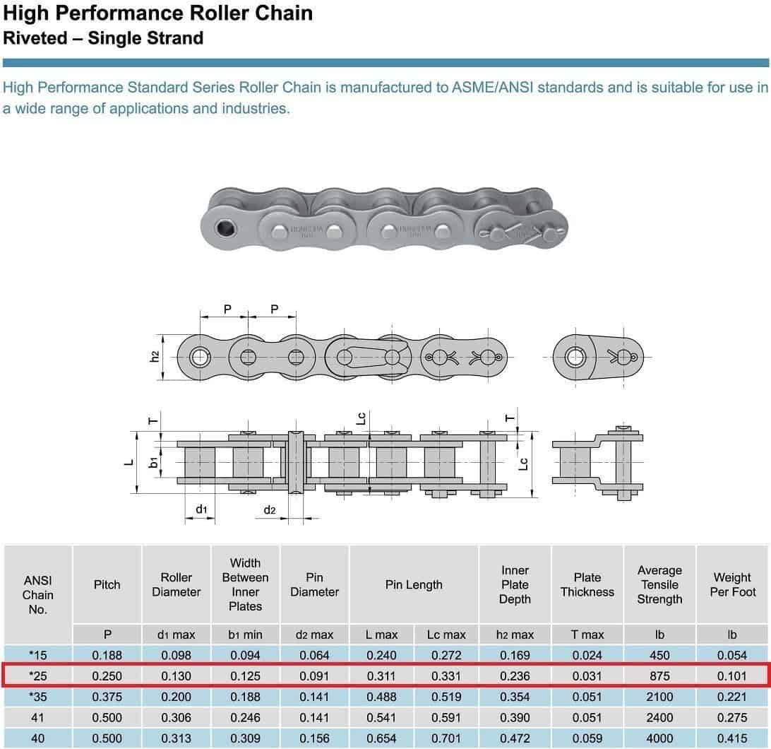 Cadena de Rodillos de 25 pies Jeremywell con 5 Enlaces de