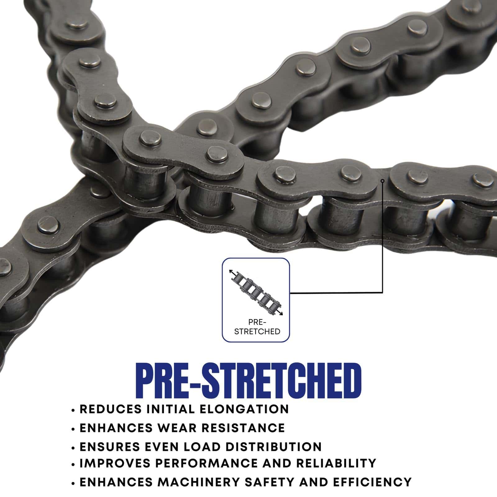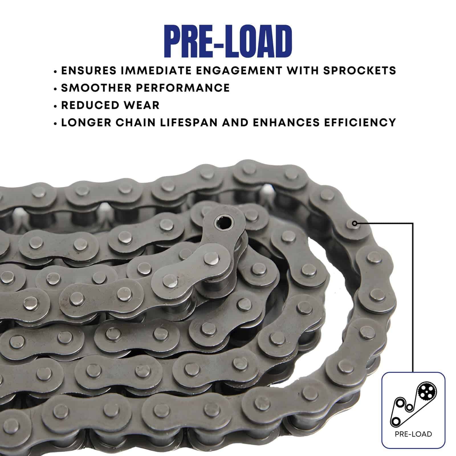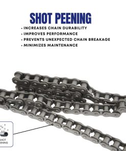 ¡Todas nuestras cadenas han pasado por medidas de proceso estrictas para obtener la mejor calidad! Esto incluye tratamiento térmico, que garantiza la vida útil y resistencia óptima para todas las piezas. Los rodillos de precisión endurecidos y granallados sólidos son estándar en la mayoría de nuestras cadenas. Los casquillos proporcionan un efecto de rodamiento de rodillos suave que reduce la carga de impacto al engancharse la cadena en los dientes del piñón. Durante el ensamblaje de la cadena, todos los componentes se orientan para asegurar que los pasadores, casquillos y placas laterales estén correctamente posicionados para obtener una resistencia y vida útil óptimas de la cadena. Las cadenas ensambladas luego se sumergen en un lubricante caliente. Esta lubricación y el proceso en el que se aplica mejoran significativamente la capacidad de vida útil de la cadena y la protegen aún más de los efectos del ambiente. Todas nuestras cadenas están pre-cargadas de fábrica. Se preprueban para soportar y mantener la carga esperada que la cadena verá durante el uso. Esto ayuda a alinear las partes de la cadena, lo que minimizará la elongación inicial. Esto aumentará drásticamente la vida útil de la cadena. Toda nuestra cadena está certificada desde la certificación QM ISO 9001:2000 hasta los requisitos de calidad ISO/TS 16949 para la industria automotriz.