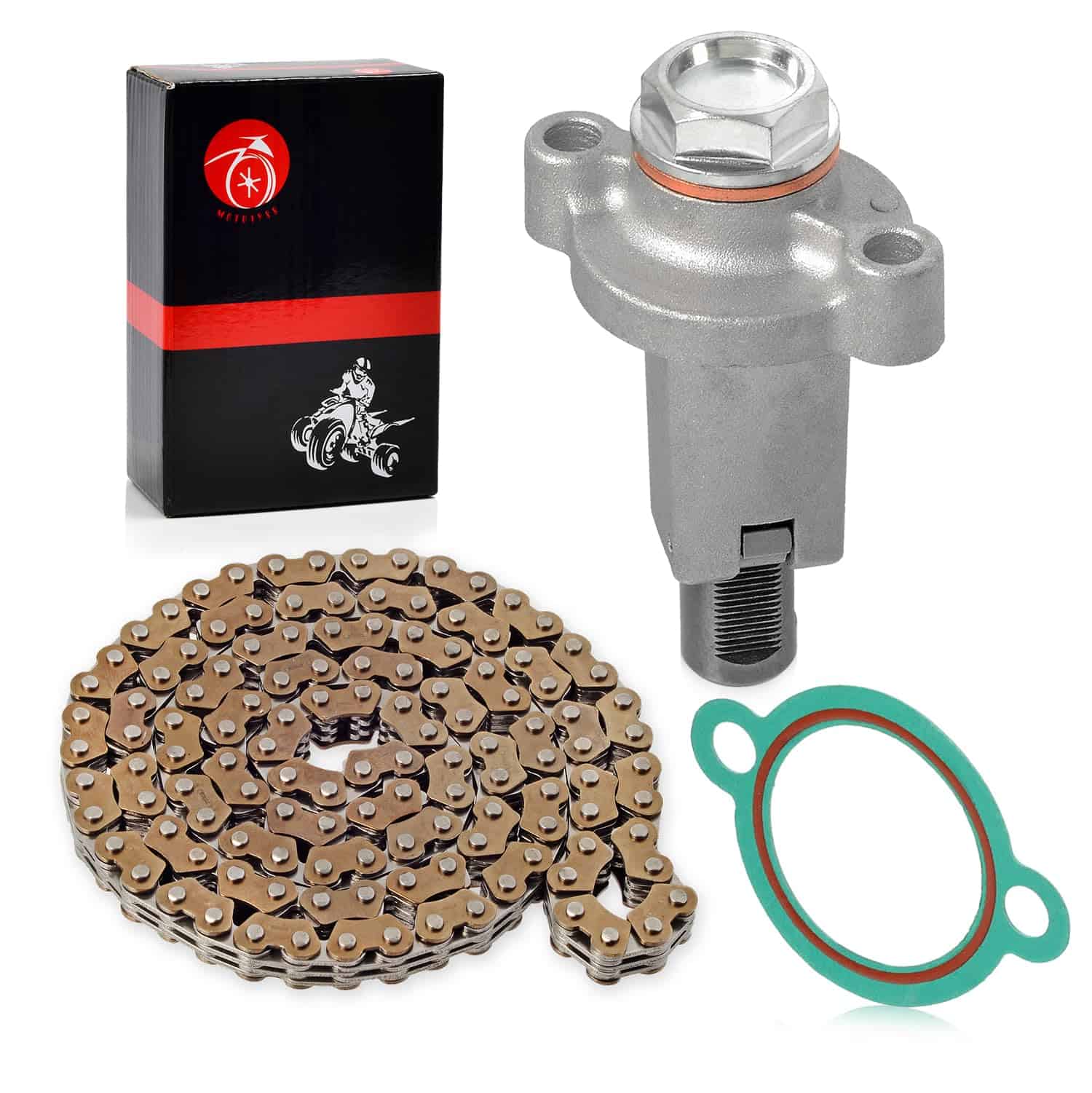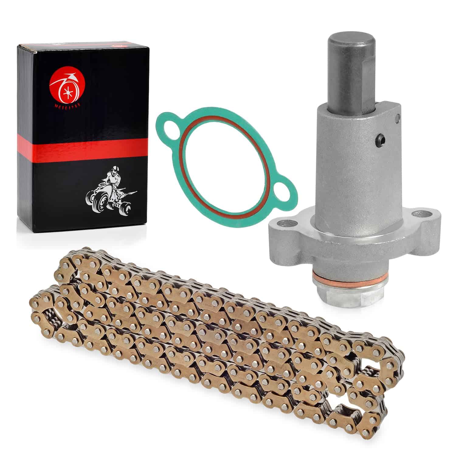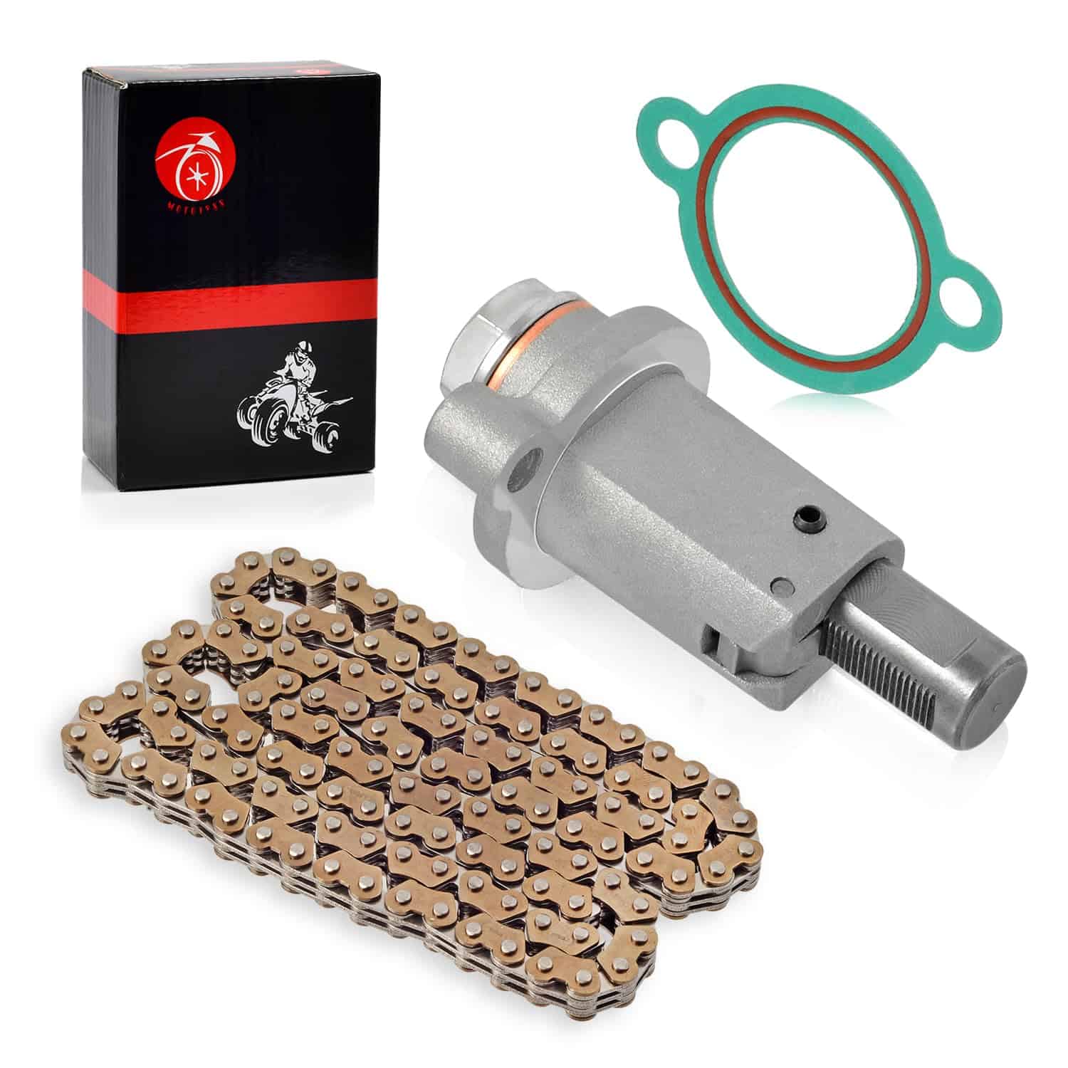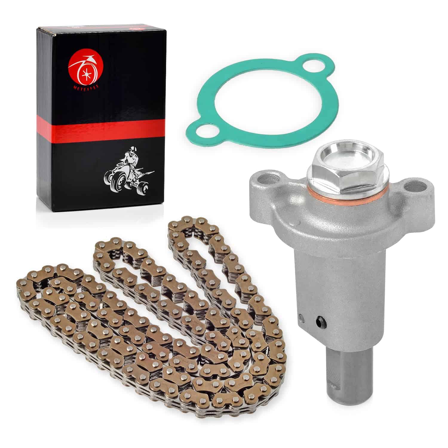 Paquete: 1x JUNTA TENSOR, 1x Tensor de Cadena de Tiempo, 1x Cadena de Tiempo. Número de parte del fabricante: 94591-57126-00. Parte de reemplazo: 4DW-12213-00-00, 3TB-12210-00-00. Este accesorio es compatible con los siguientes modelos: Yamaha Grizzly 550 YFM550 2009-2014, Raptor 700 YFM700 2006-2023, Raptor 700R YFM700R 2006-2023, Grizzly 700 YFM700 2007-2023, Kodiak 700 YFM700K 2019-2023.