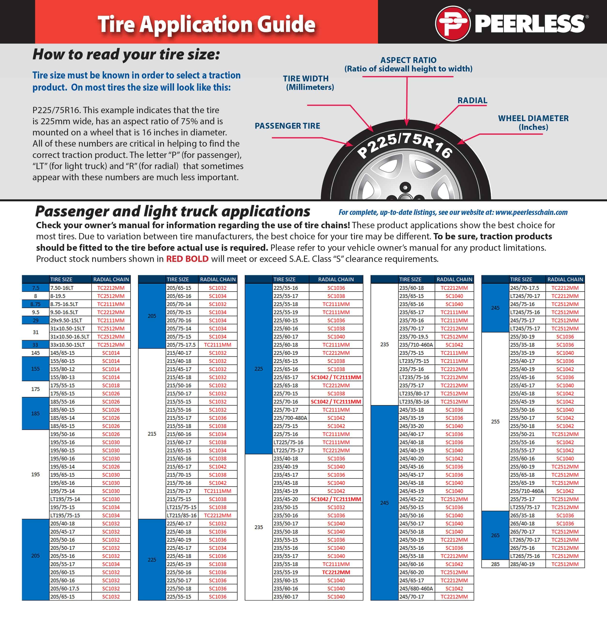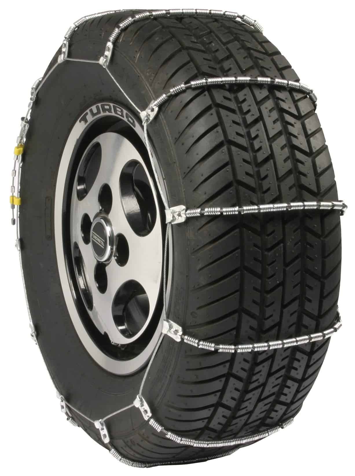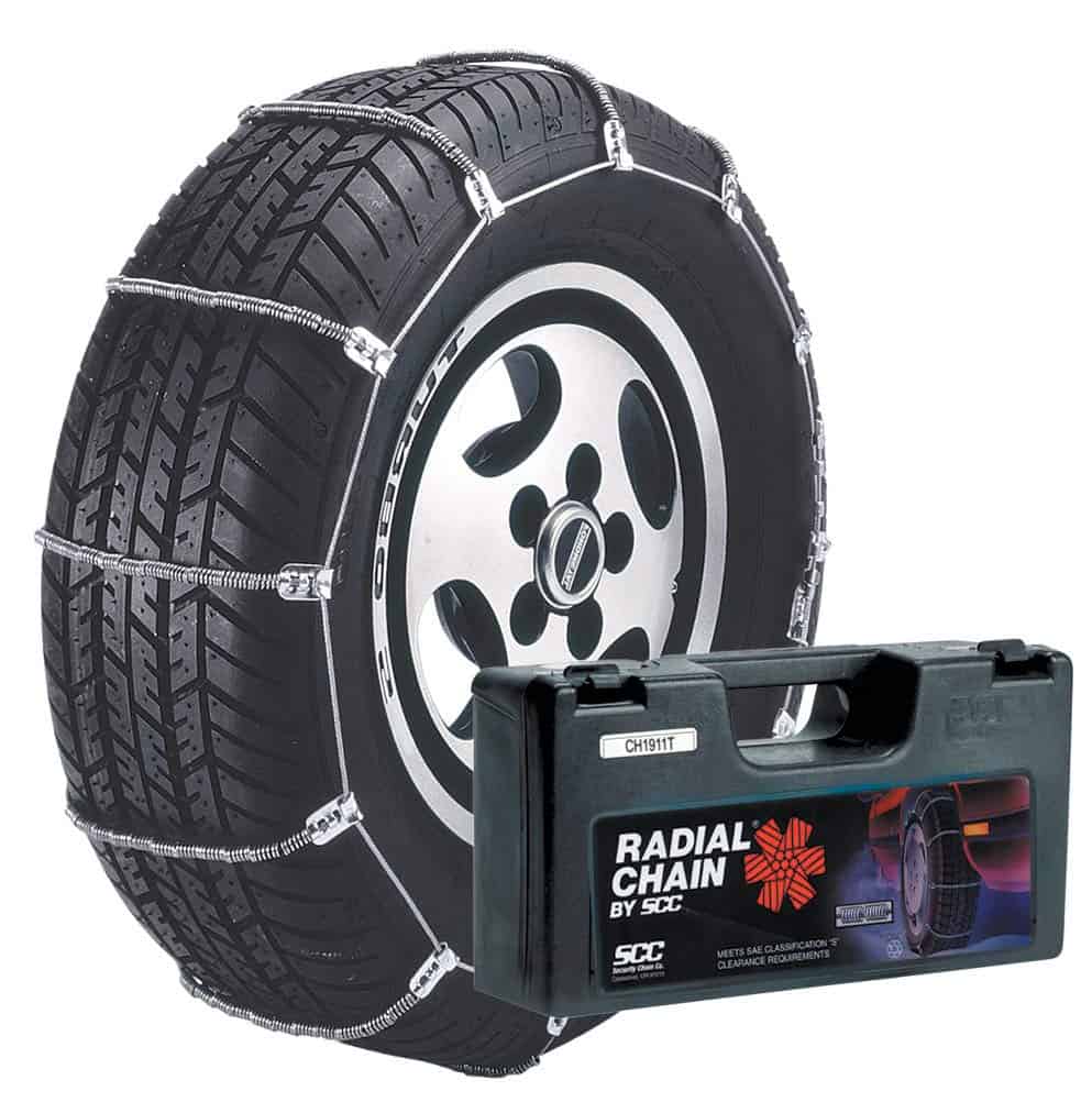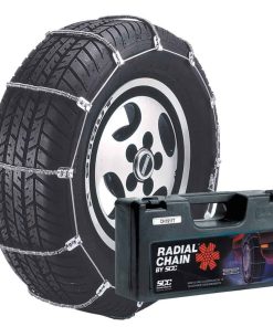 Originalmente diseñado para evitar el desgaste del lateral de los neumáticos radiales, Radial Chain fue la primera marca real en productos de tracción invernal con cadenas de cable. Con una historia de pruebas de rendimiento desde Alaska hasta Suiza y una tabla de aplicaciones de neumáticos que contiene todos los neumáticos de equipo original vendidos en América del Norte, Radial Chain es una excelente y, sin embargo, asequible opción en tracción invernal. El paquete de plástico de Radial Chain es duradero, resistente al agua y reciclable. NO SE deben utilizar tensores de cadena.