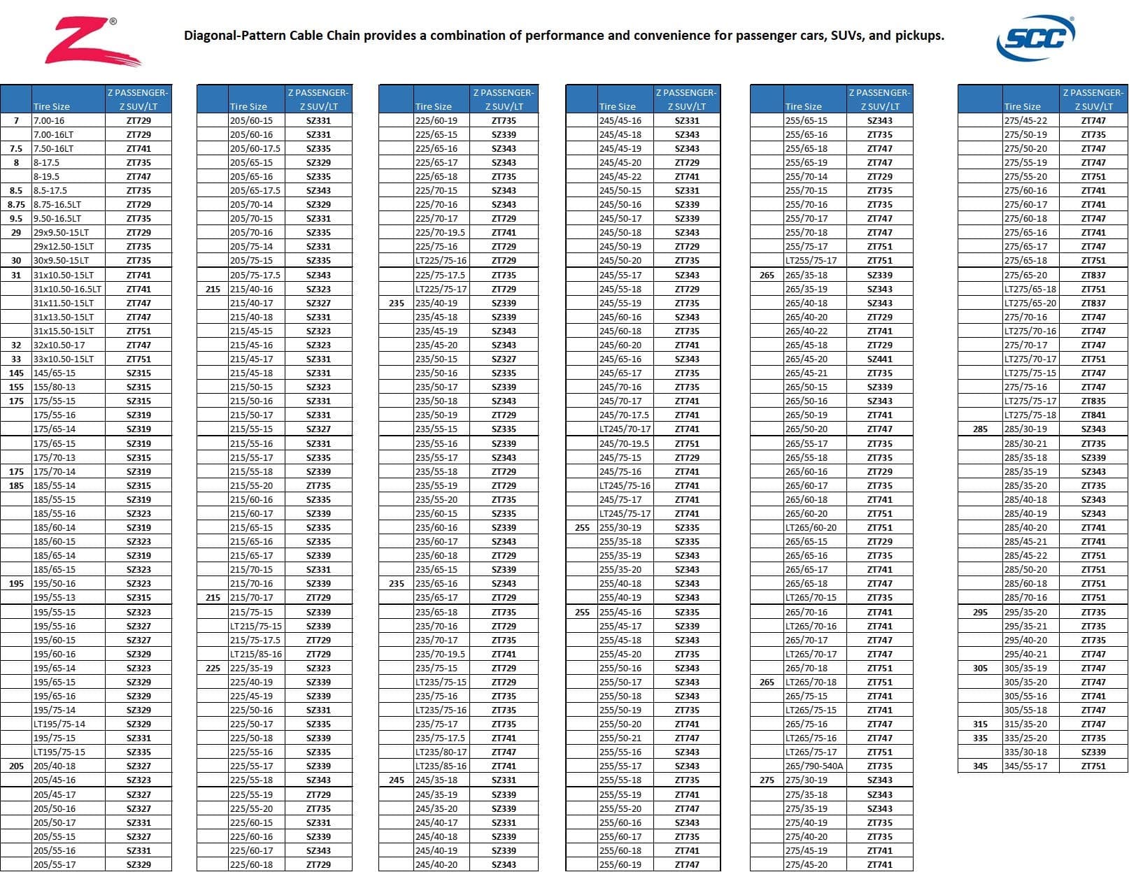 Cadena de tracción para neumáticos de automóvil SCC SZ329