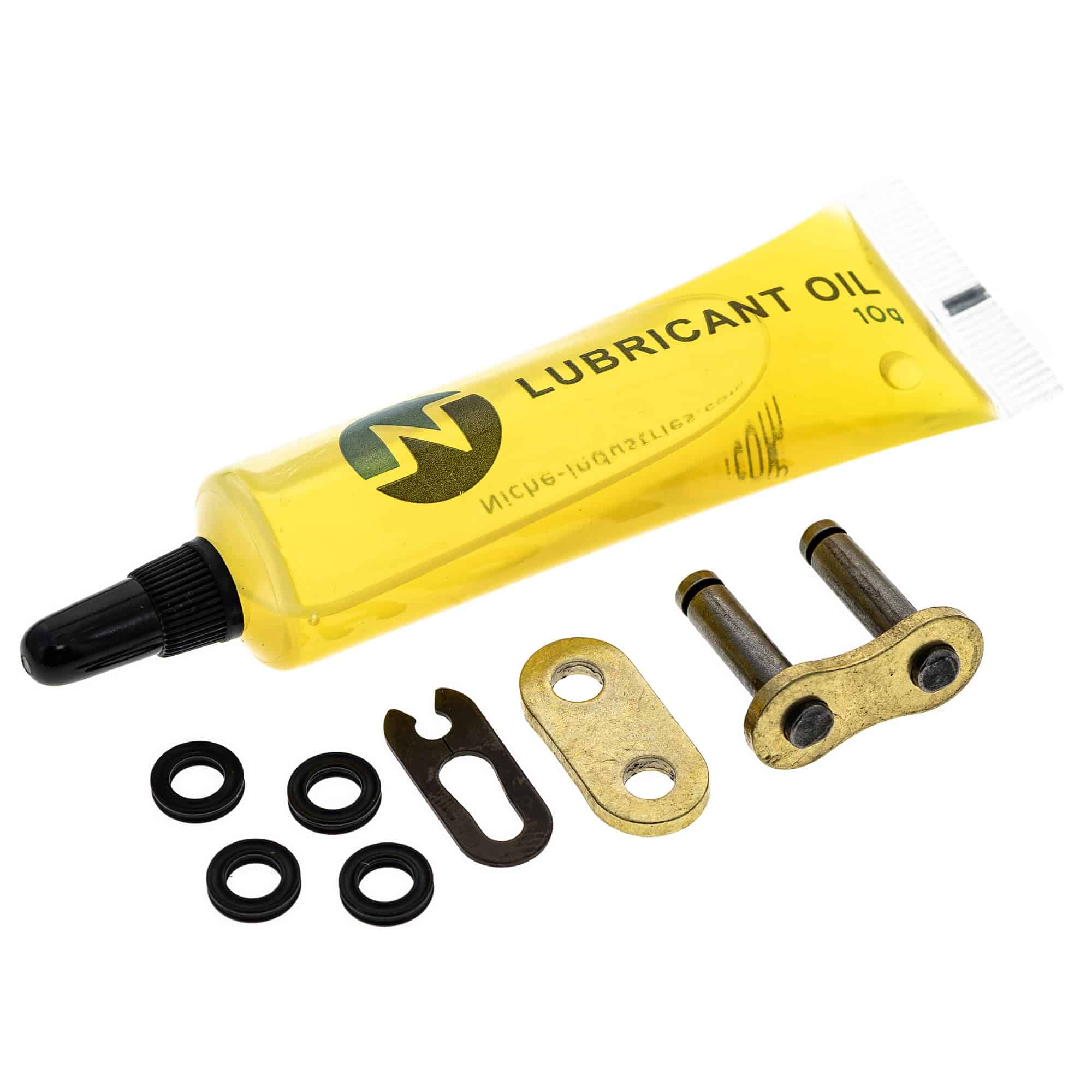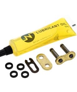 1. Cadena de transmisión X-Ring de ultra alto rendimiento | Paso 428 | 124 eslabones | Anillos X premium | Eslabón maestro – Abrazadera para instalación fácil | Aceite – Aceite para cadenas de alta temperatura LT-001A | Resistencia a la tracción 25,2 KN o 5665 lbf.