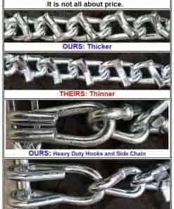 La cadena de neumáticos Heavy Duty está hecha de eslabones transversales más gruesos y eslabones laterales más gruesos y sujetadores. Se recomiendan cadenas de eslabones torcidos para pavimento y concreto. Se recomienda el tensor opcional para una vida útil y rendimiento máximo de las cadenas. Para una instalación más sencilla de cadenas de dos y cuatro eslabones, consulte nuestras Rampas Sno-Chain.