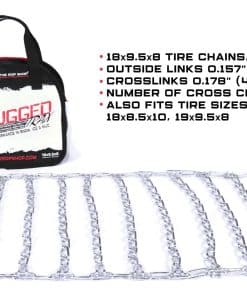 The ROP Shop | 2 Link Tire Chains & Tensioners para cortacésped Kubota con neumáticos 18×8.5×10 de nieve. Estas cadenas de neumáticos de 2 eslabones y tensores de repuesto de The ROP Shop son exactamente lo que necesita para enfrentar las condiciones difíciles de nieve y barro. Con enlaces exteriores de 0.157″ (4 mm) y enlaces cruzados de 0.178″ (4.5 mm), estas cadenas están diseñadas para una tracción óptima. El paquete incluye un par de cadenas de neumáticos de 2 eslabones con recubrimiento de zinc y un par de tensores de cadena para una instalación segura. Tenga en cuenta que las cadenas de neumáticos en la imagen son una representación y pueden no ser idénticas a las que recibirá. Asegúrese de verificar su tamaño de neumático exacto antes de comprar para garantizar un ajuste adecuado. ¡Prepárese para el invierno con estas cadenas de neumáticos de calidad de The ROP Shop!
