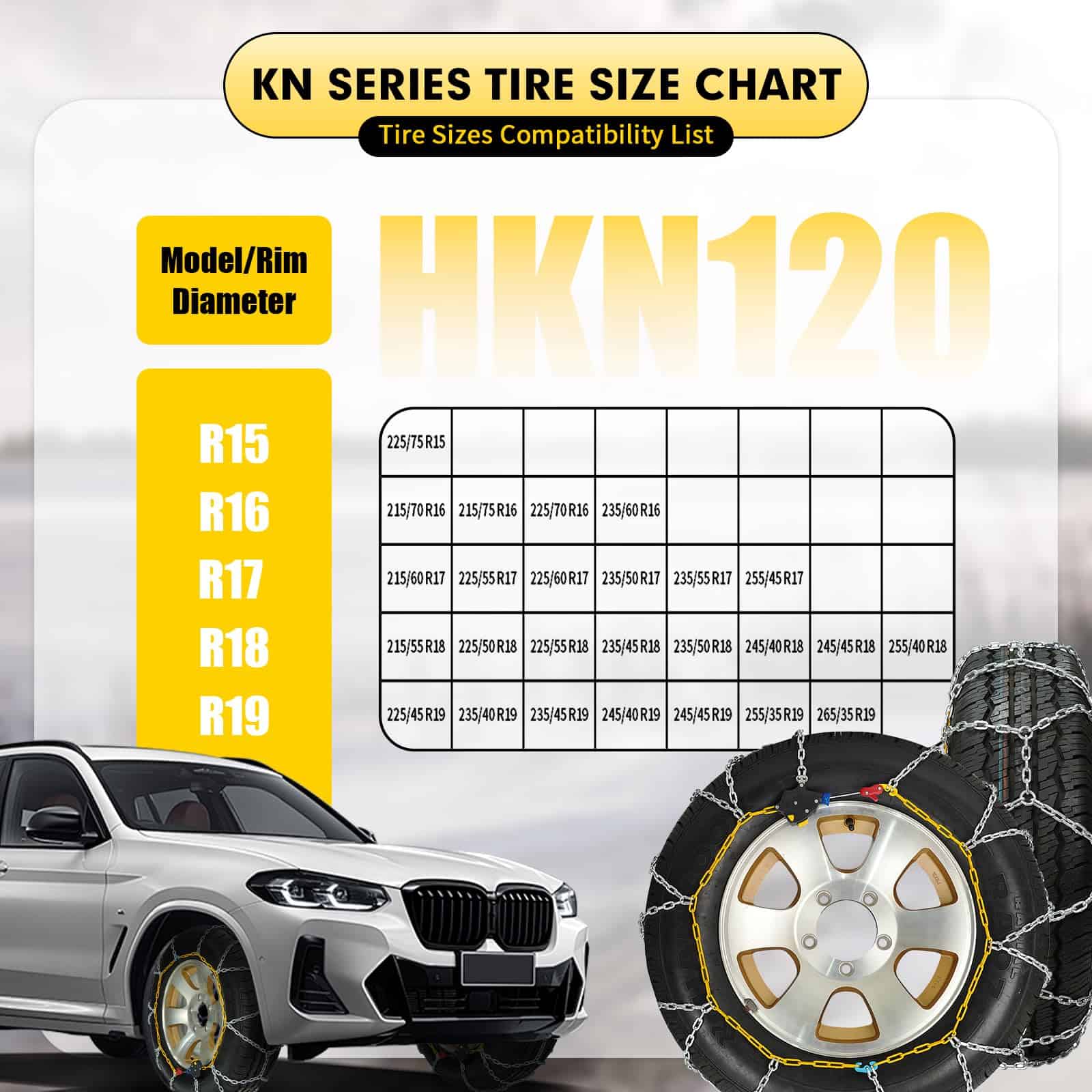 5. Aviso: Por favor, verifique dos veces su tamaño exacto de neumático para asegurarse de que estas cadenas de neumáticos se ajusten adecuadamente a su equipo. NO compre solo basándose en el número de modelo. Para garantizar la vida y el rendimiento máximos, las cadenas de neumáticos deben instalarse lo más apretadas posible.